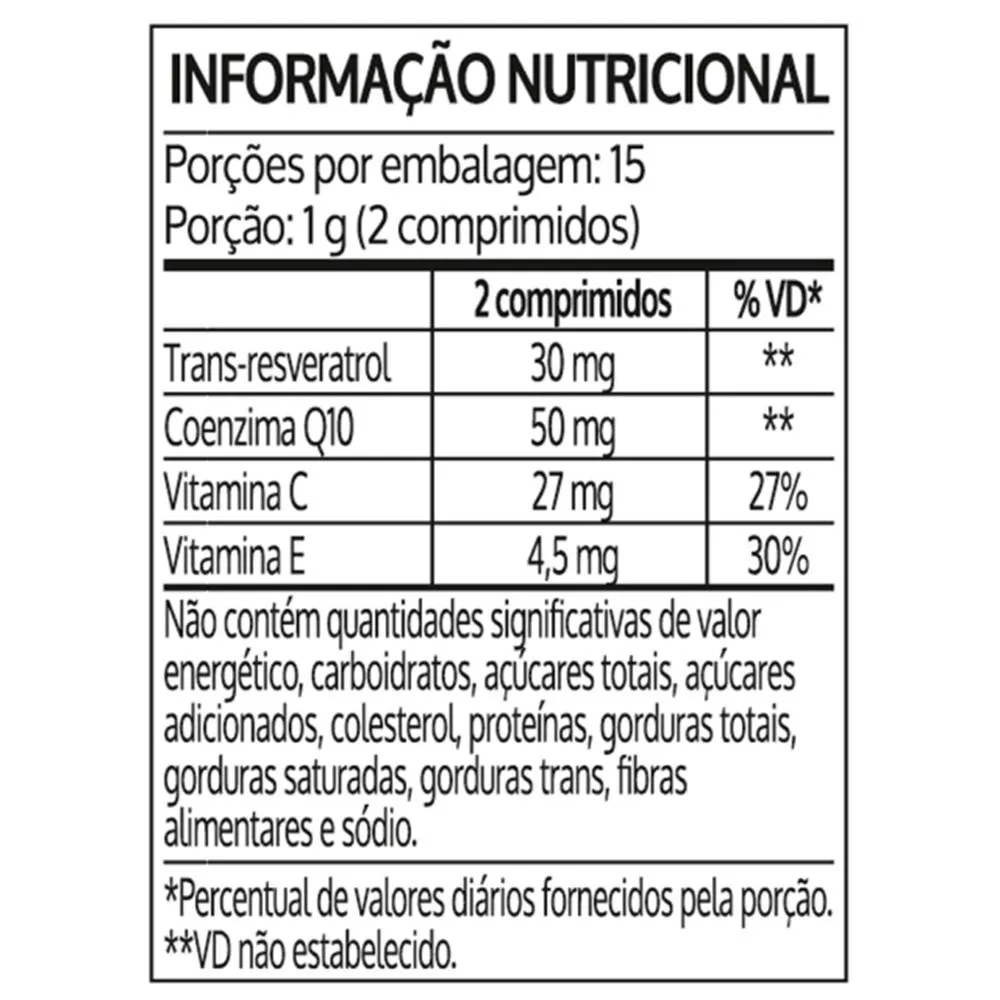 - Combina Resveratrol, Coenzima Q10 e Vitaminas C e E.