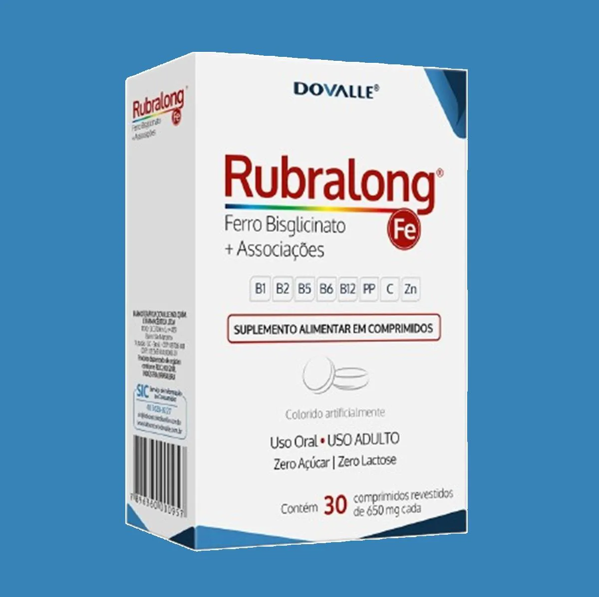 Rubralong® é um suplemento alimentar em comprimidos, para adultos e idosos, à base de Ferro associado a 8 micronutrientes fundamentais ao organismo. É indicado como complemento nutricional em casos de anemia por falta de ferro associada, ou não, com carências vitamínicas e minerais.
