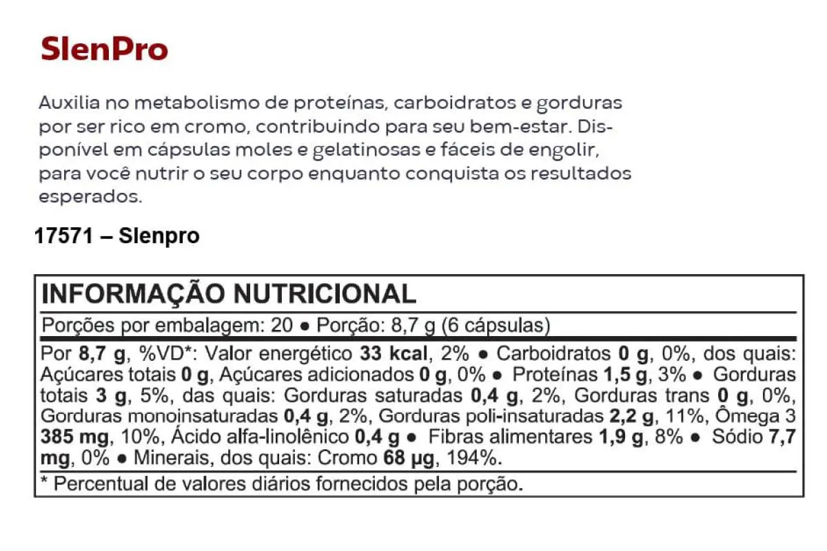 Suplemento Alimentar Slen Pro Hnd 120 Cápsulas