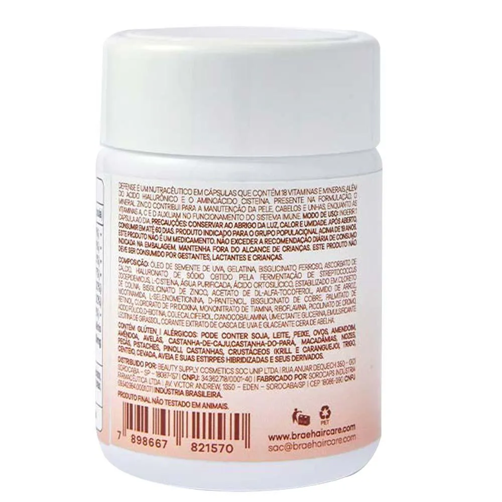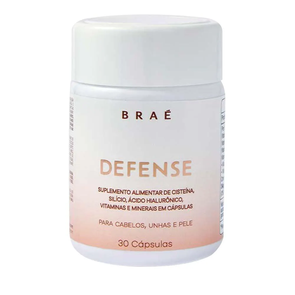 Defense Suplemento Alimentar Vitaminas e Minerais - Caps 30 da BRAÉ é um poderoso nutracêutico desenvolvido para oferecer uma solução completa para a saúde capilar e do corpo. Este suplemento em cápsulas contém uma combinação única de 18 vitaminas e minerais essenciais, incluindo ácido hialurônico e o aminoácido cisteína, formulados especificamente para apoiar a formação de tecidos e promover a saúde dos cabelos. Ideal para uso diário.