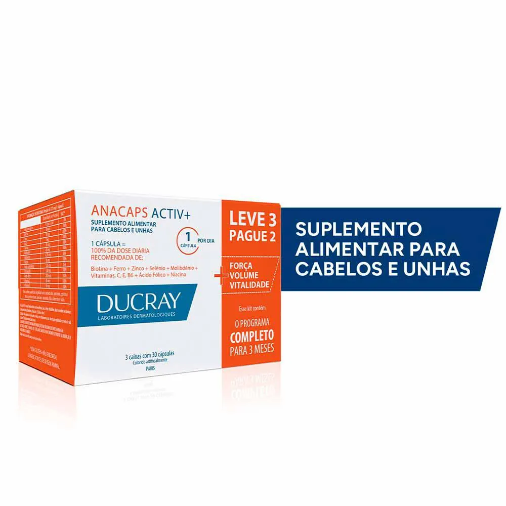 3 Anacaps Activ+ Ducray - 30 Cápsulas