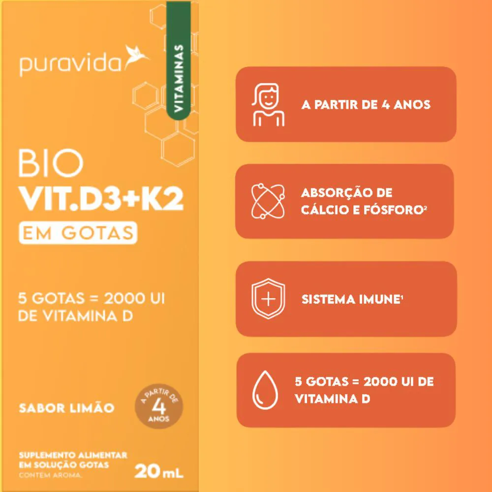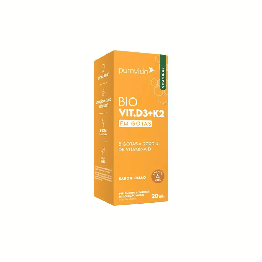 Suplemento Bio Vit.d3+K2 Gotas Sabor Limão Kit 2 - Puravida
