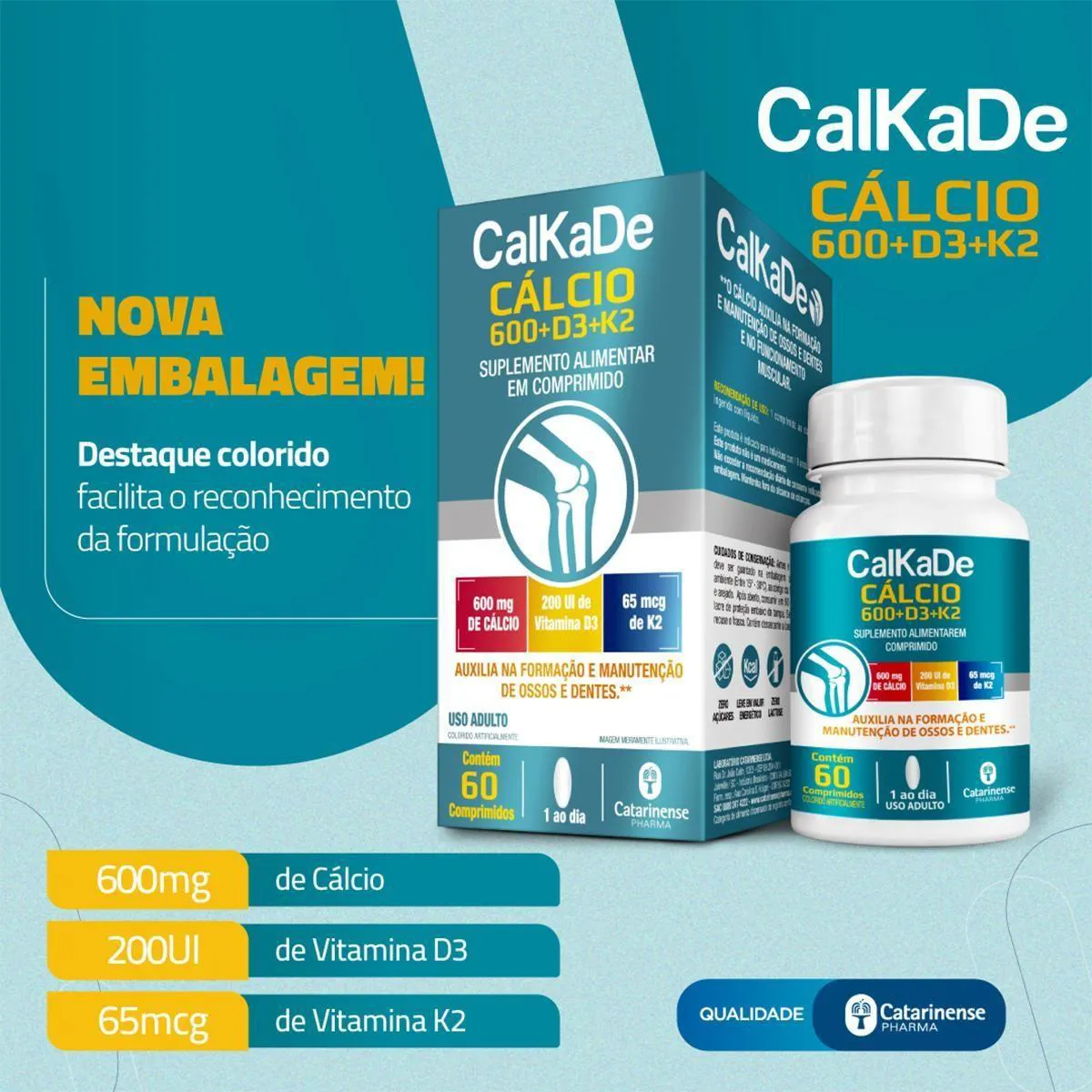 Suplemento Catarinense CalKaDe Cálcio vitamina d 60Cp