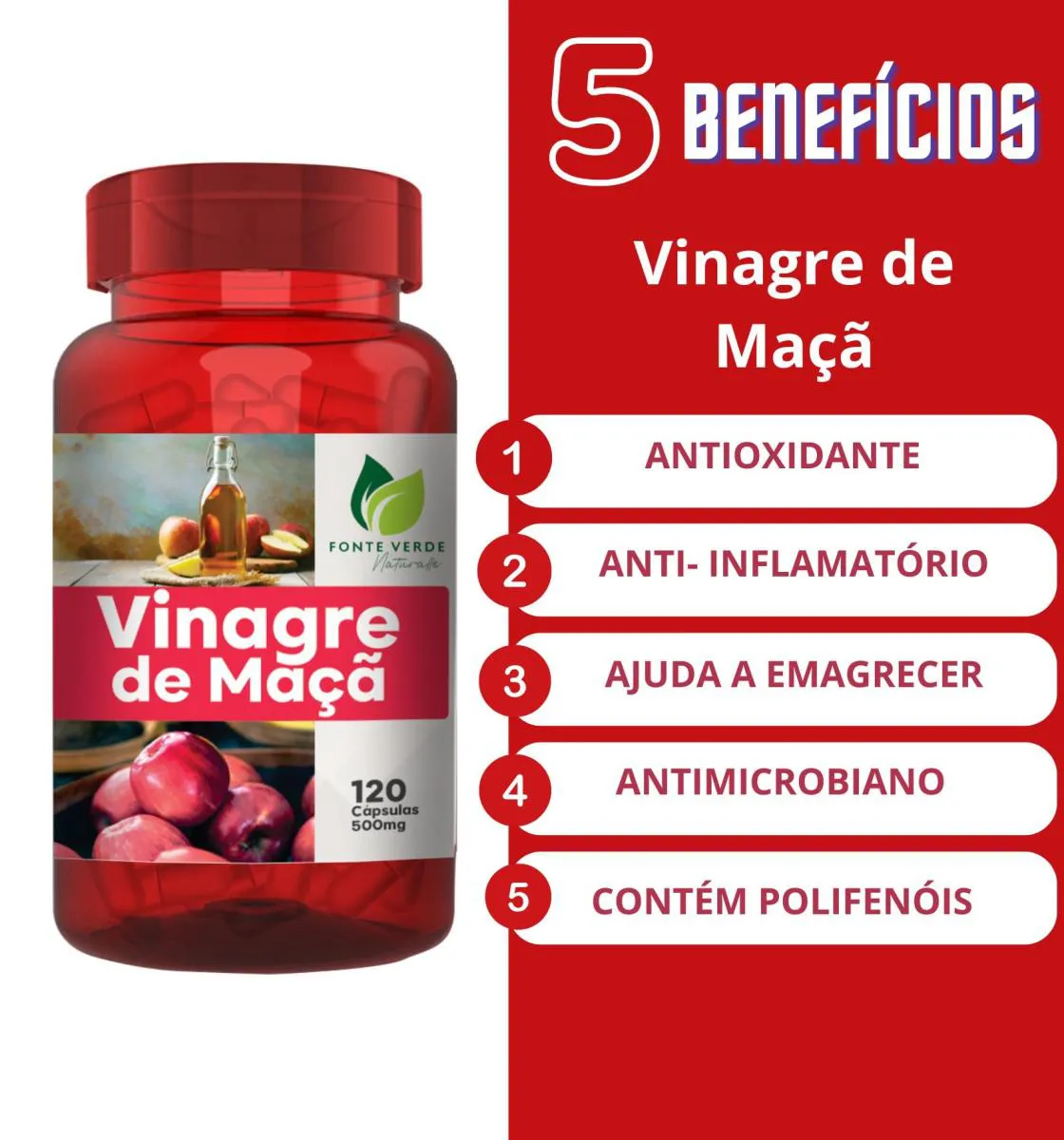 Suplemento Vinagre de Maçã Encapsulado em Pó 500mg 120 Capsulas Fonte Verde