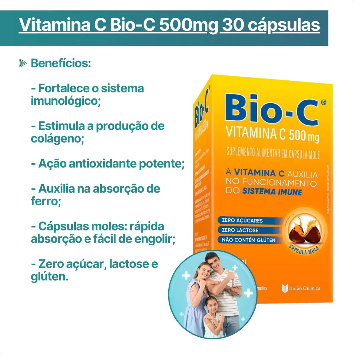 Além de reforçar a imunidade, Bio-C também auxilia na formação de colágeno, favorecendo a saúde da pele, unhas e articulações. Possui ação antioxidante, combatendo os danos causados pelos radicais livres e contribuindo para o metabolismo energético e absorção do ferro dos alimentos.