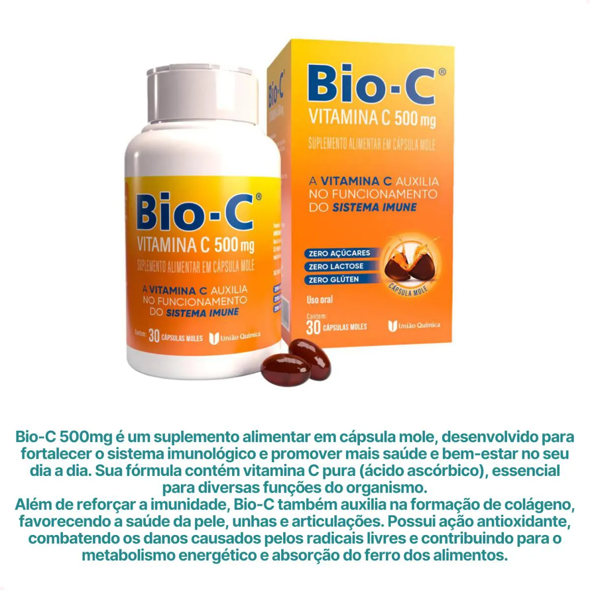 Bio-C 500mg é um suplemento alimentar em cápsula mole, desenvolvido para fortalecer o sistema imunológico e promover mais saúde e bem-estar no seu dia a dia. Sua fórmula contém vitamina c pura (ácido ascórbico), essencial para diversas funções do organismo.