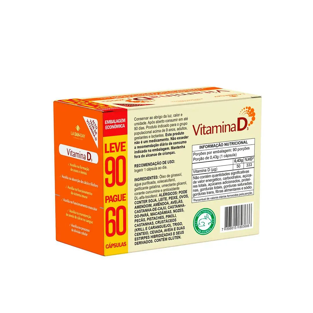 Suplemento Vitamina D3 2000Ui - 90 Caps - La San-Day