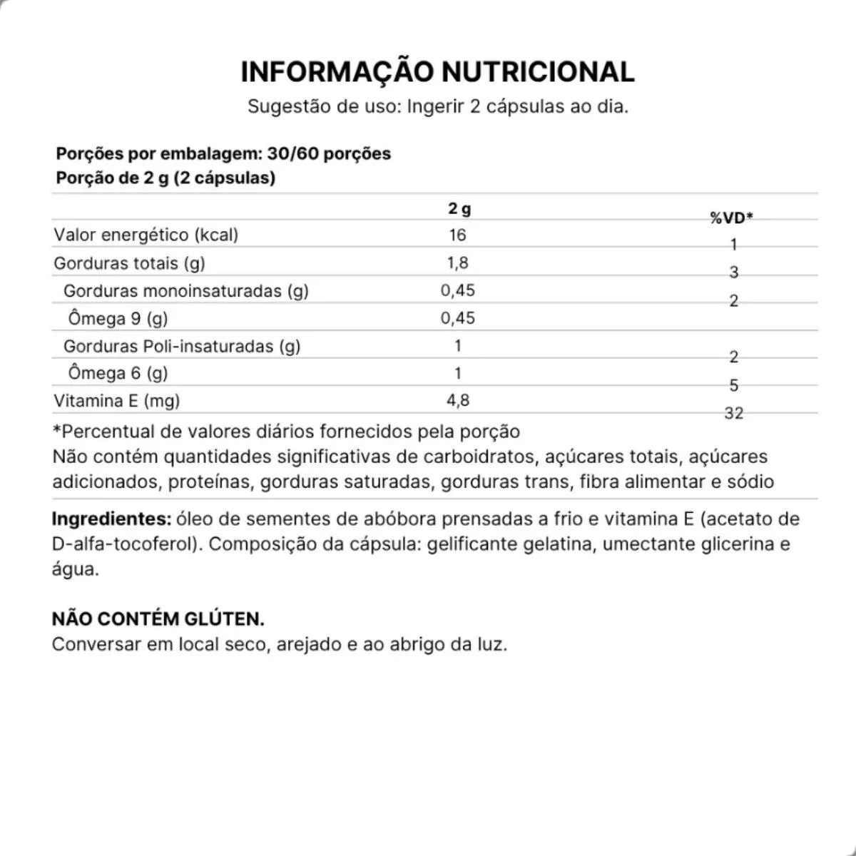 - Embalagem protegida contra umidade e luz, preservando a integridade do suplemento.