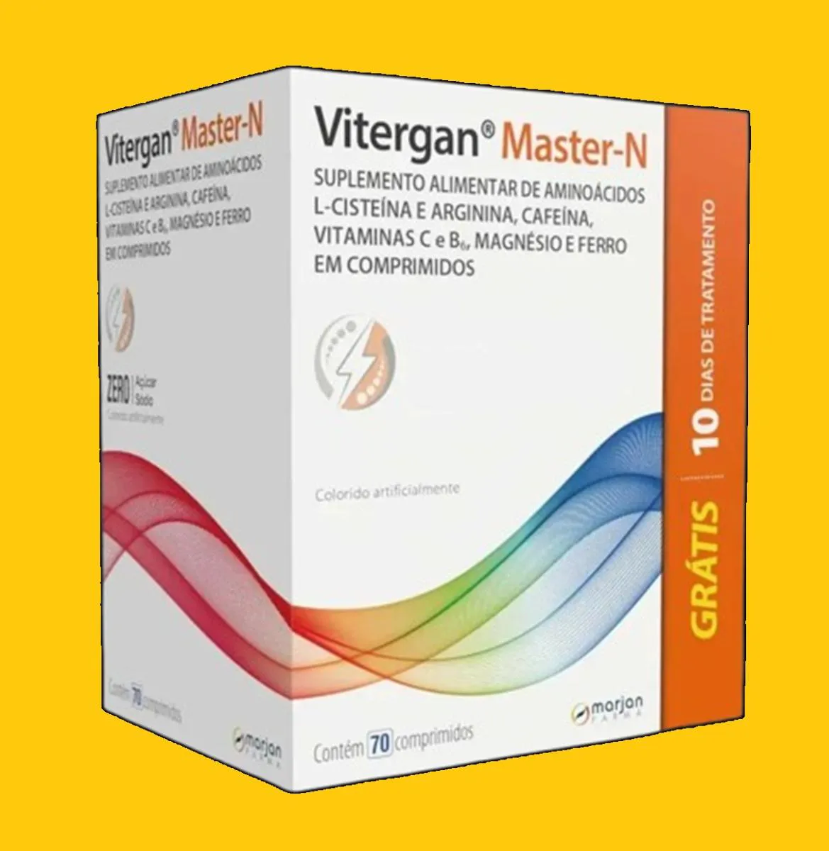 Suplemento Vitergan Master-N 70 Comprimidos - Marjan Vitergan Master-N é um suplemento vitamínico e mineral completo, formulado com vitaminas do complexo B, C, E, zinco e magnésio, essenciais para o bom funcionamento do organismo. Oferece equilíbrio e disposição para o dia a dia, com 70 comprimidos, garantindo rendimento e praticidade em uma rotina de cuidados contínuos. Imagens Meramente Ilustrativas. Todas as Informações Divulgadas são de Responsabilidade Exclusiva do Fabricante/fornecedor.