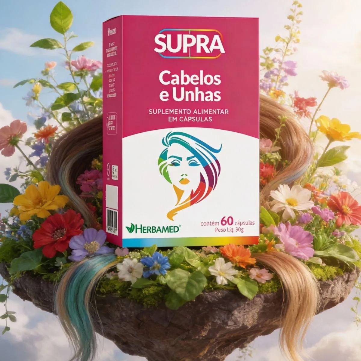 Supra Cabelos e Unhas 500Mg Beleza 60 Capsulas Herbamed Natural