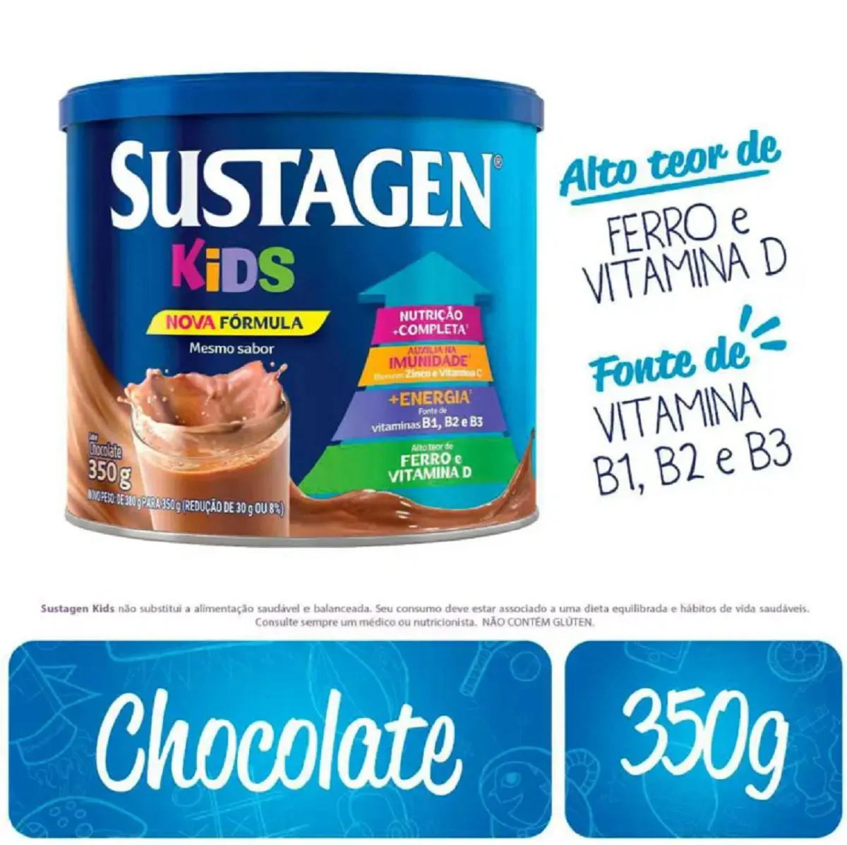 Sustagen Kids é um complemento alimentar que ajuda a balancear a dieta e garantir o crescimento saudável dos 2 aos 6 anos de idade. Sua nova fórmula contém 30% menos açúcar e 27 vitaminas e minerais para oferecer uma nutrição completa e com mais sabor aos pequenos.