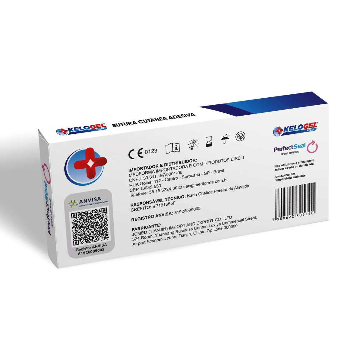 KELOGEL STRIP – SUTURA CUTANÊA ADESIVA O KELOGEL STRIP PERFECTSEAL é indicado para fechamento de pele, substituindo outros métodos em lacerações e incisões cirúrgicas. Pode ser usado sozinho ou em conjunto com suturas ou grampos, proporcionando maior sustentação pós-remoção. Composição: Curativo estéril com filamentos porosos de poliéster. Indicações: Substituição de métodos tradicionais de fechamento em lacerações e incisões. Pode ser usado com suturas, grampos ou após sua remoção para suporte adicional. Modo de uso: