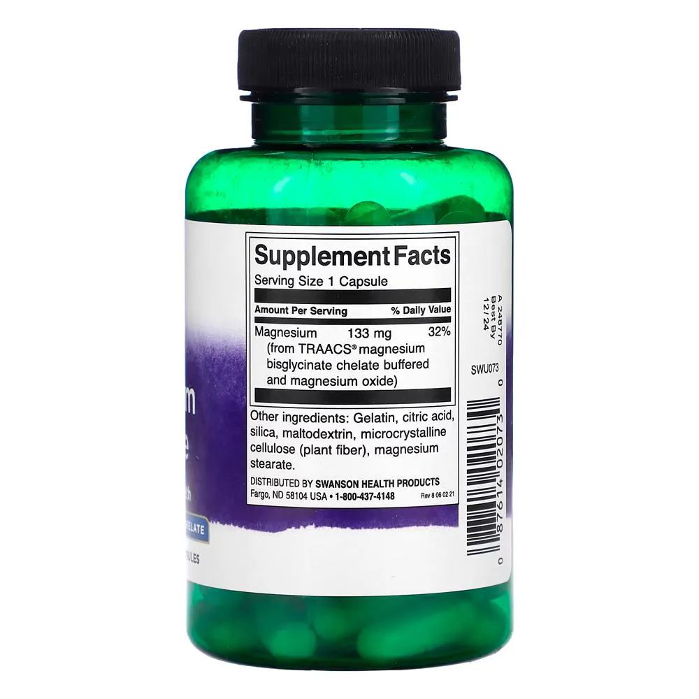 Glicinato de Magnésio 133mg Swanson 90 Caps Importado
