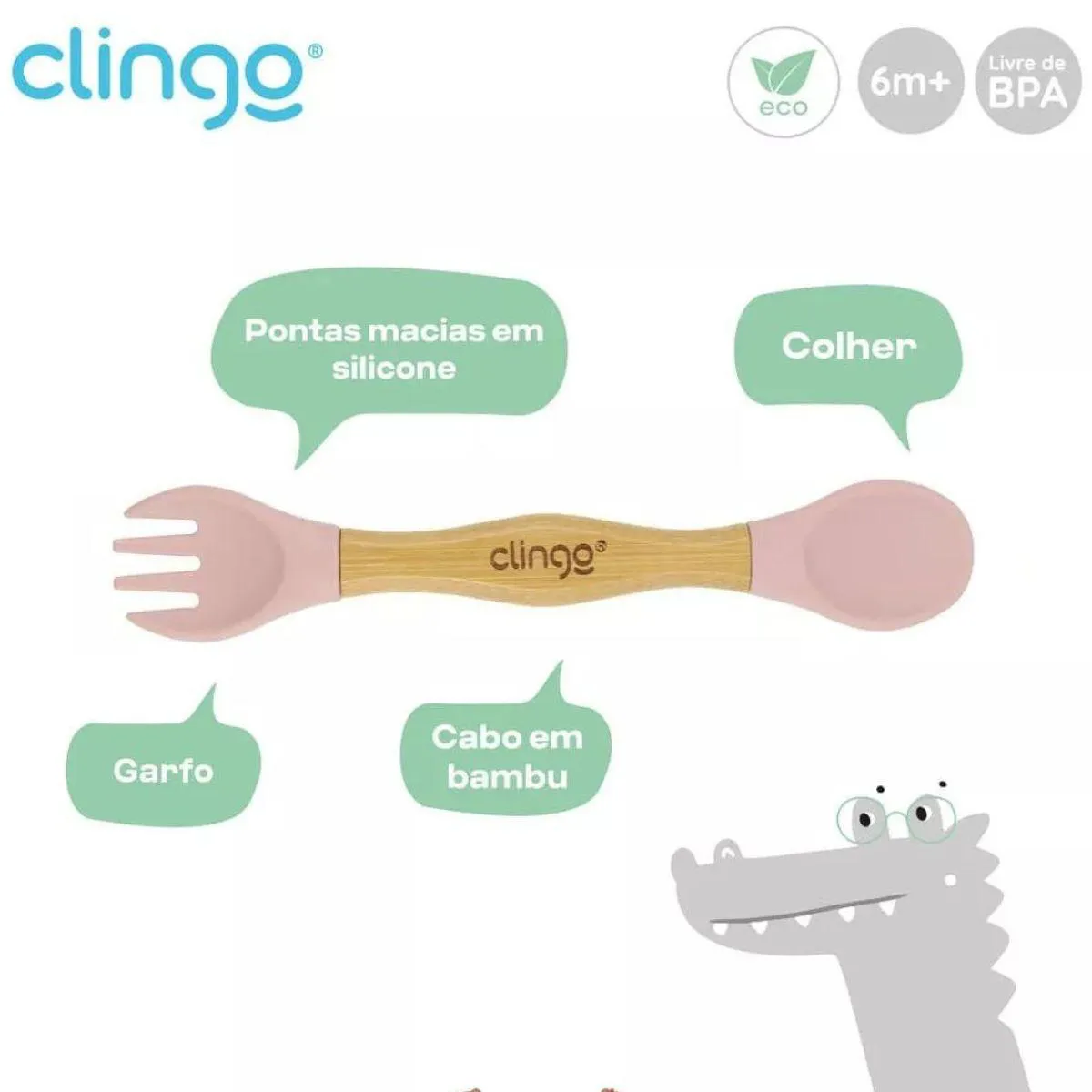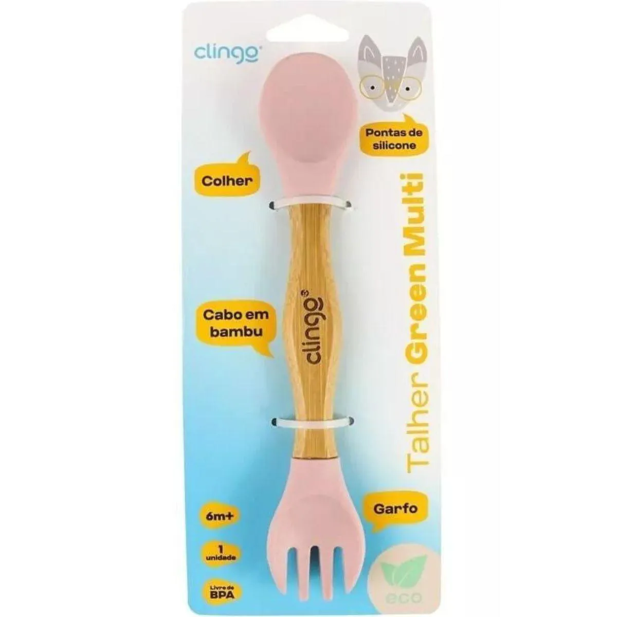 TALHER DUPLO DE BAMBU E SILICONE LINHA ECO GREEN ROSA CLINGO