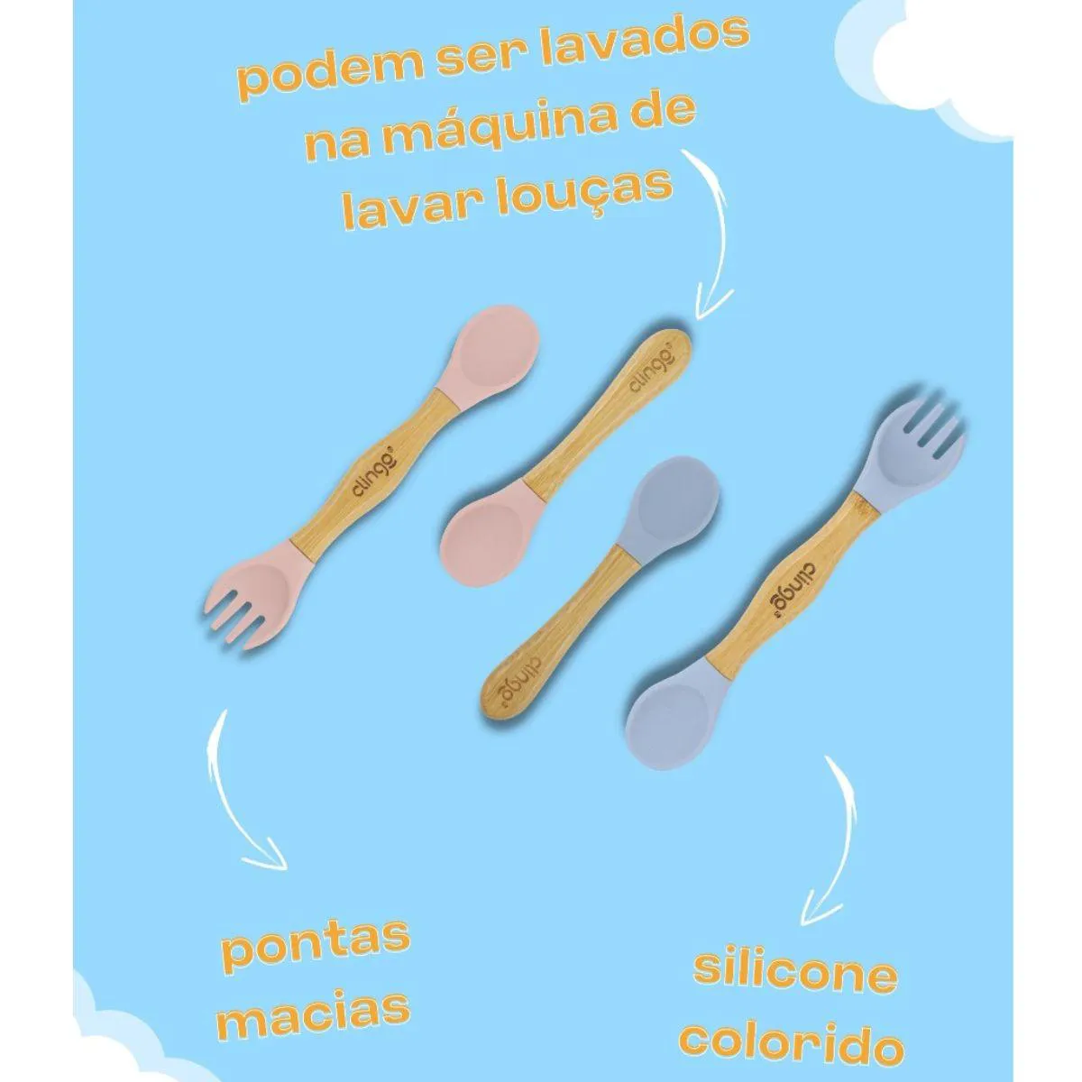 Com cabo rígido e pontas flexíveis, a colher e garfo de treinamento gera autonomia e facilita o contato da criança com o alimento. Com acabamento em silicone, propociona sensação de leveza e maciez, protegendo ainda mais a boca dos pequenos.
