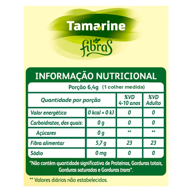 Referências: Tamarine Fibras: produto isento de registro no Ministério da Saúde, conforme rdc 27/2018. Referências consultadas: 1. Bernaud Fsr, Fodrigues Tc. Fibra alimentar:ingestão adequada e efeitos sobre a saúde do metabolismo.arq bras endocrinol metab. 2013;57(6):397-405. 2. rotulagem do produto Tamarine Fibras.