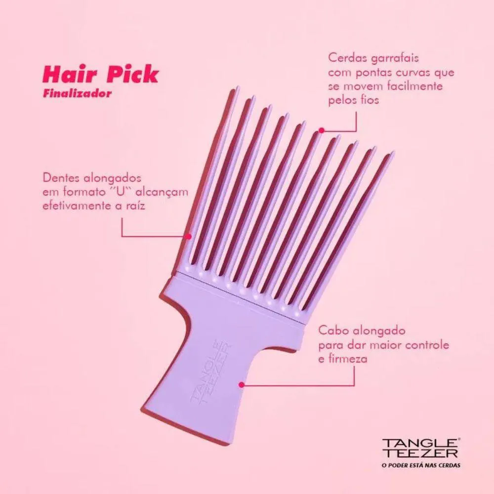 Diferente dos pentes garfos convencionais, o Hair Pick da Tangle Teezer apresenta uma engenharia voltada para o conforto e a saúde dos fios:- Cerdas Largas em "U": O formato das cerdas permite que o pente deslize suavemente pela estrutura do cacho sem causar repuxamentos.