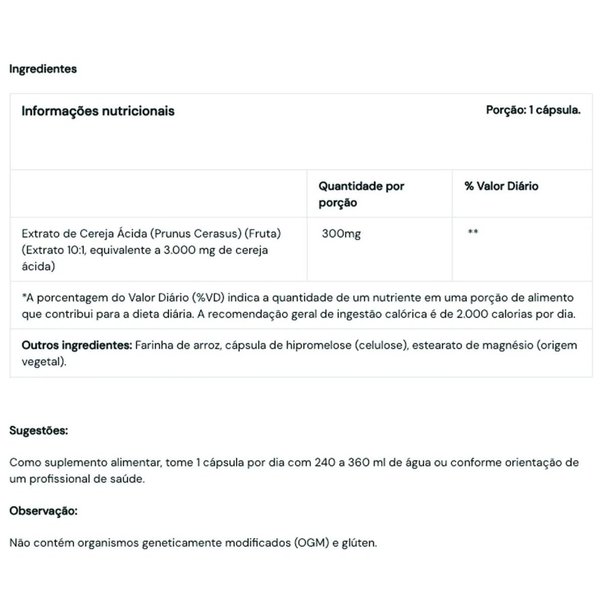 ATENÇÃO   Produto original importado Produto disponível no Brasil       SUGESTÃO DE USO: Tomar 1 cápsula por dia com água ou conforme indicado pelo seu profissional de saúde.