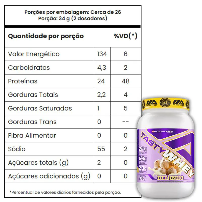 Tasty Whey Adaptogen 900G - Whey Protein 3W Proteína Concentrada Isolada Hidrolisada - Beijinho
