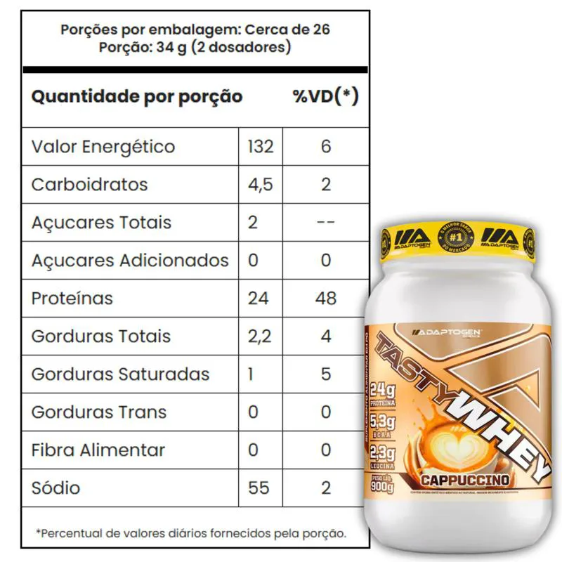 Tasty Whey Adaptogen 900G - Whey Protein 3W Proteína Concentrada Isolada Hidrolisada - Cappuccino
