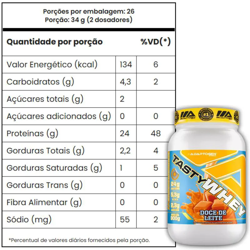 O queridinho da Adaptogen para quem busca sabor incrível e alto desempenho. O Tasty Whey reúne as três frações do whey (WPC + WPI + WPH) para entregar 24 g de proteína por dose com ótima digestibilidade, solubilidade superior e textura cremosa — perfeito para o pós-treino, entre refeições e receitas proteicas.