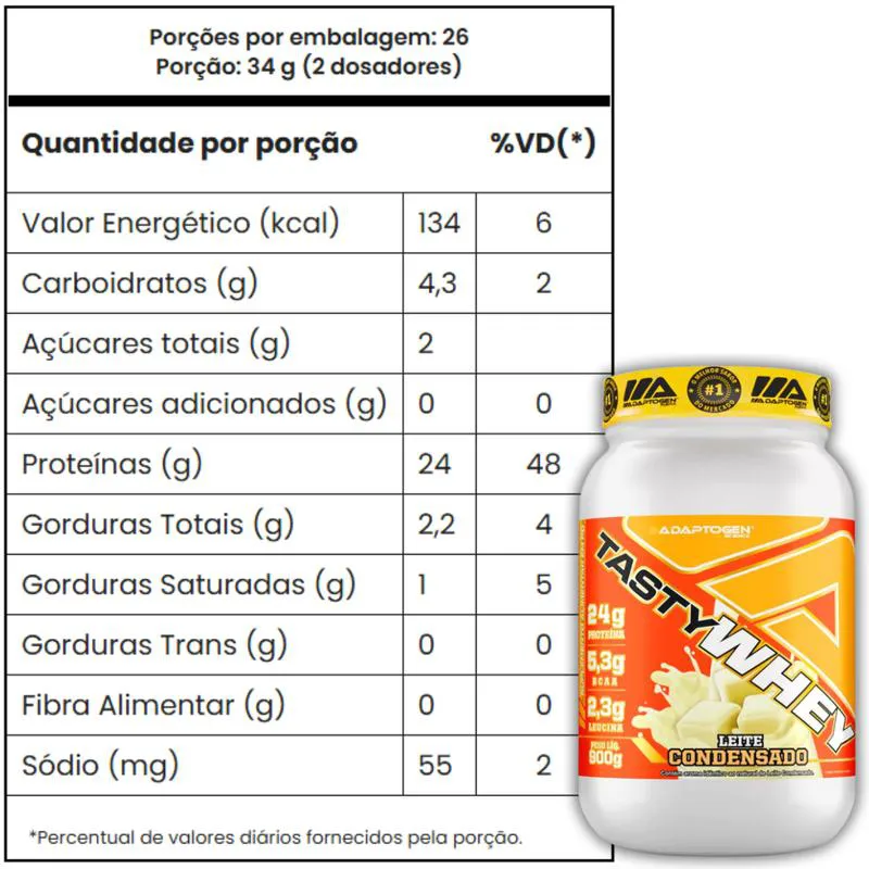 Tasty Whey Adaptogen 900G - Whey Protein 3W Proteína Concentrada Isolada Hidrolisada - Leite Condensado