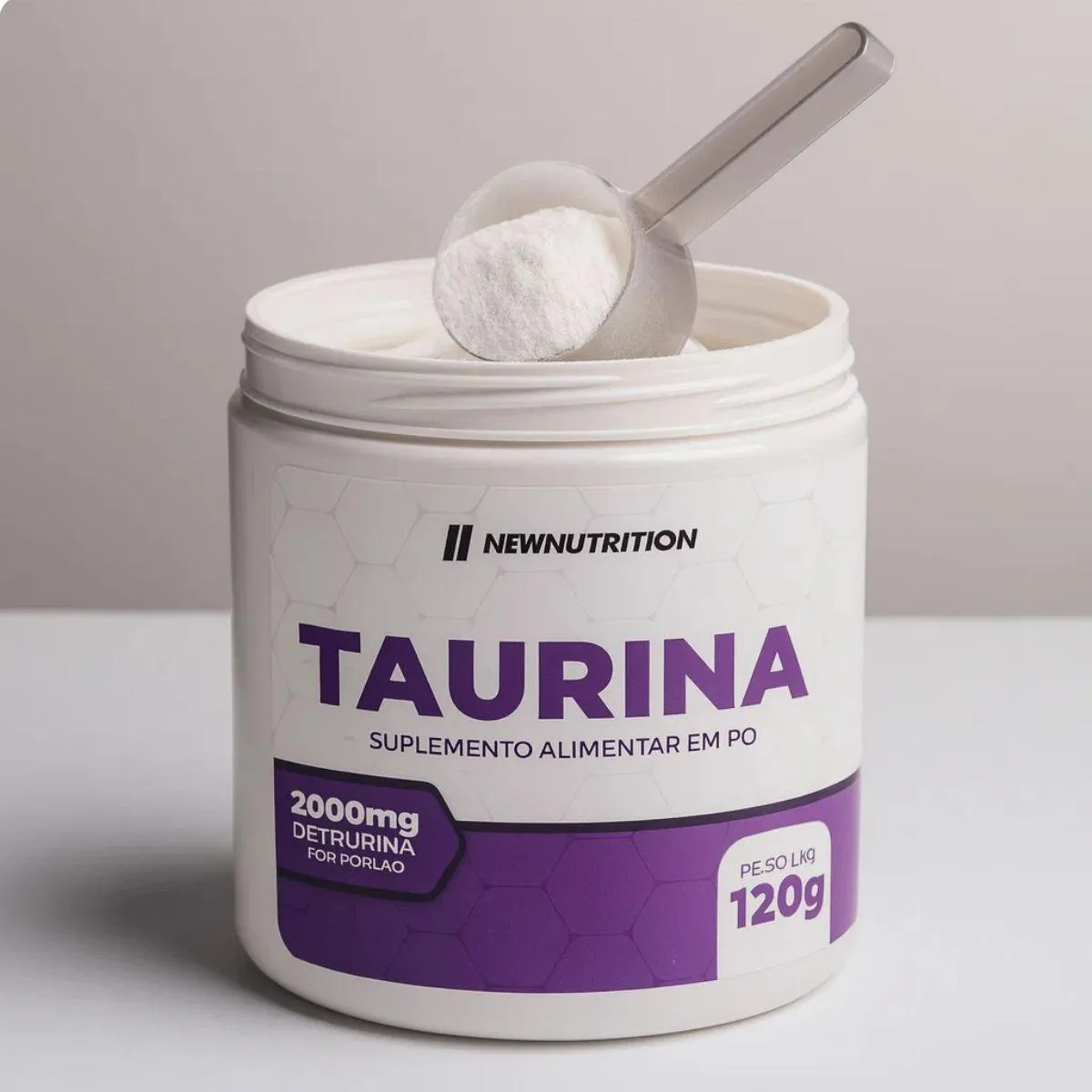 Taurina em Pó 120g New Nutrition taurina em pó pura, embalagem de 120 g, para ser adicionada a bebidas e shakes.