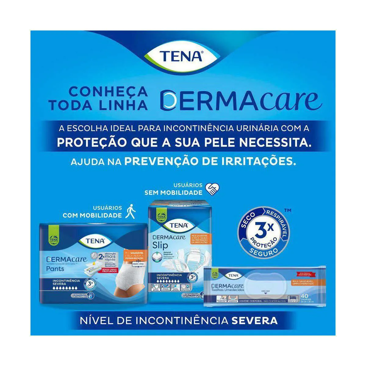 A Fralda Geriátrica Tena Slip DermaCare é um acessório de higiene e proteção íntima que promove alta absorção, com eficácia comprovada contra vazamentos, sendo recomendado para pacientes com incontinência urinária ou fecal, de nível severo.