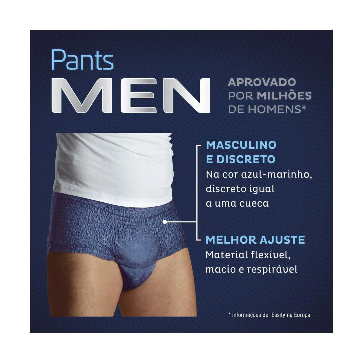 A Tena Pants Men é uma roupa íntima descartável de material flexível, desenvolvida especialmente para homens que necessitam de uma solução para a incontinência urinária de nível moderado.