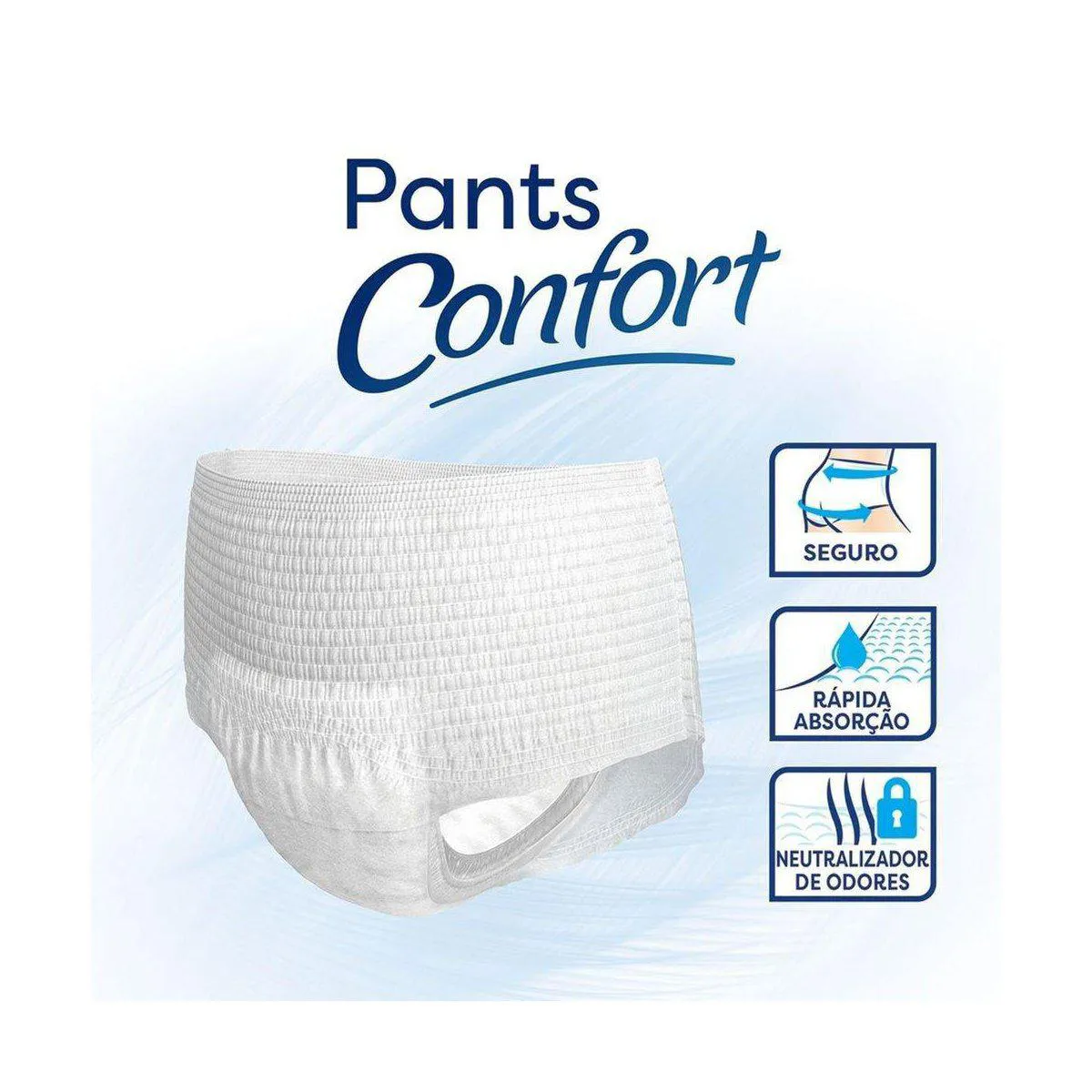 Pants Confort é uma roupa íntima descartável indicada para quem sofre com incontinência urinária moderada a severa. É unissex, segura, discreta e fácil de usar, basta vestir como se fosse uma roupa íntima.