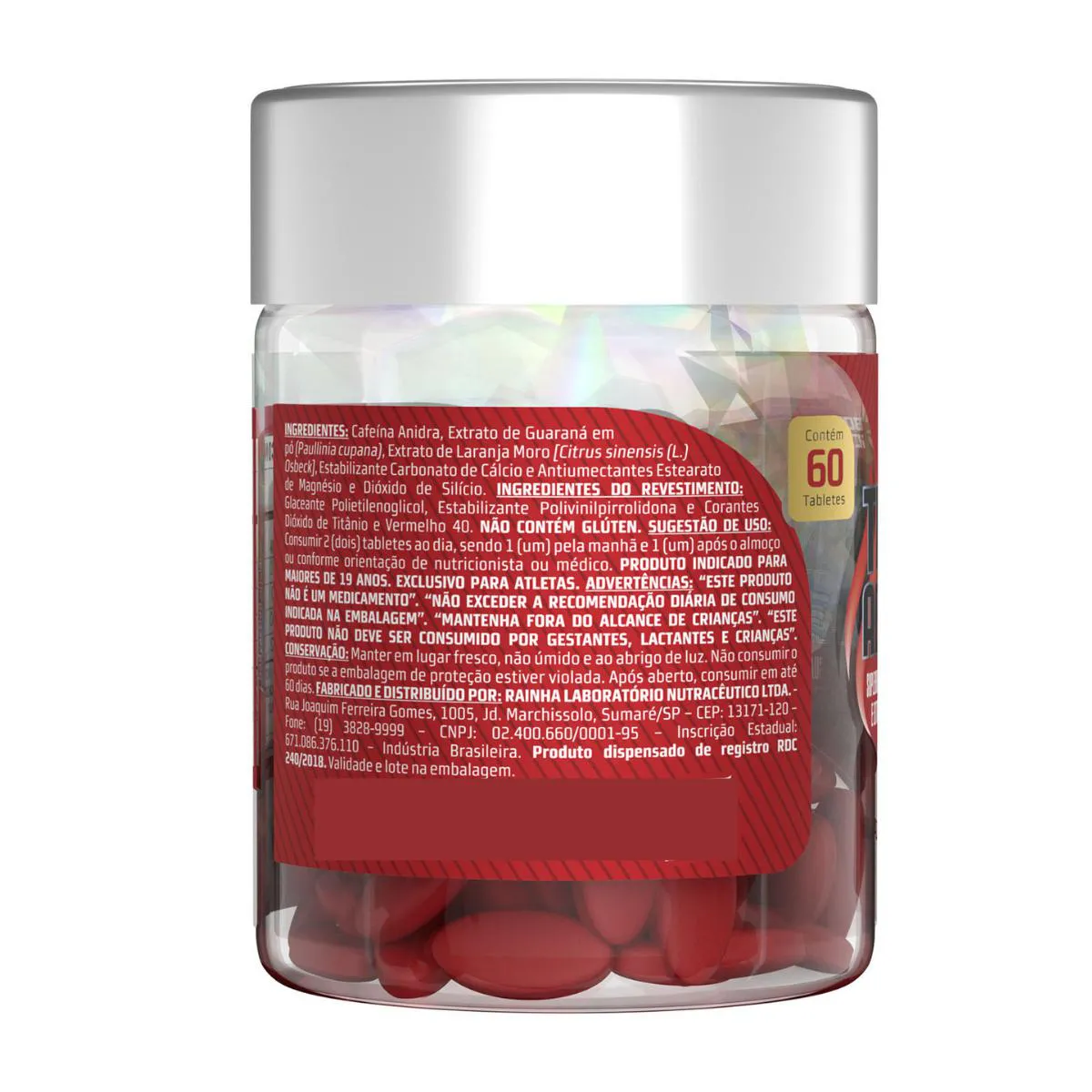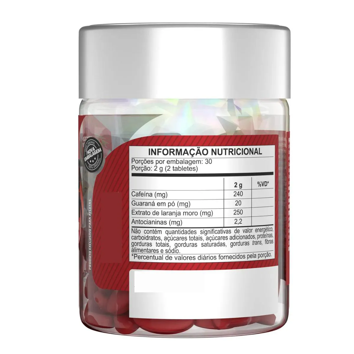 uplemento formulado com cafeína anidra, extrato de guaraná e laranja moro, ingredientes conhecidos por contribuir com mais energia, foco e disposição no dia a dia e durante os treinos. Prático para incluir na rotina, é indicado para adultos e atletas que buscam melhorar o desempenho e manter um estilo de vida ativo. Ingredientes: Cafeína Anidra, Extrato de Guaraná em pó, Extrato de Laranja Moro, Estabilizante Carbonato de Cálcio e Antiumectantes Estearato de Magnésio e Dióxido de Silício. Sugestão de uso: Consumir 2 (dois) tabletes ao dia, sendo 1 (um) pela manhã e 1 (um) após o almoço ou conforme orientação de nutricionista ou médico.