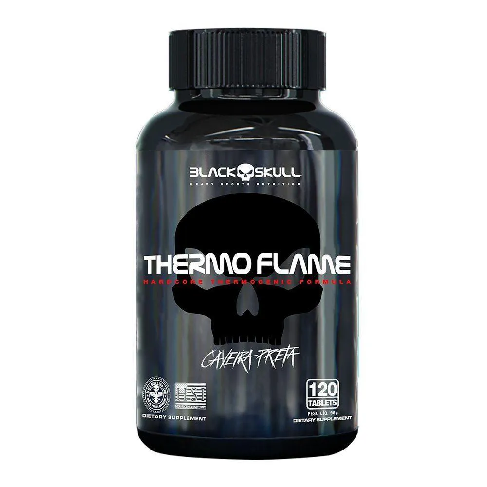 Thermo Flame da linha Caveira Preta Series veio para integrar a nova linha da Black Skull USA. Poderoso e eficiente, Thermo Flame veio para te ajudar na conquista de um shape perfeito, pois possui 360mg de cafeína pura por dose, que irá fornecer mais energia e foco, trazendo os melhores resultados.INGREDIENTES:Cafeína anidra, estabilizante celulose microcristalina, antiumectante dióxido de silício e lubrificante estearato de magnésio, revestimento hidroxipropilmetilcelulose e triacetina. NÃO CONTEM GLÚTEN.COMO CONSUMIR THERMO FLAME?Consumir 1 tablete de Thermo Flame uma vez ao dia. Atletas: 1 tablete, duas vezes ao dia. Uma hora antes do treino ou conforme orientação de um profissional especializado. Seu consumo deve estar associado a uma alimentação equilibrada e hábitos de vida saudáveis. PRODUTO ISENTO DE REGISTRO DE ACORDO COM RDC 243/2018 - ANVISA