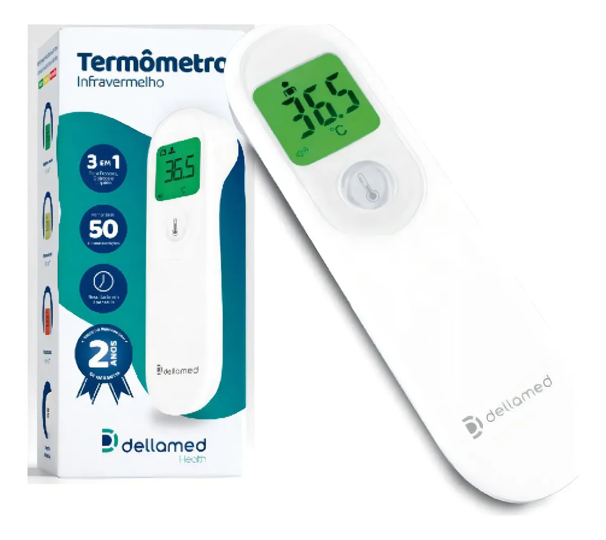 O Termômetro Digital da Dellamed permite medir a temperatura corporal sem contato de forma rápida e confortável, podendo ser utilizado por várias pessoas, em qualquer lugar. Com tecnologia avançada, este aparelho de alta precisão é perfeito para o uso doméstico ou empresárial, garantindo uma medição precisa e segura. Seu funcionamento é feito através de botões e apontamento infravermelho para medir a temperatura, apresentando resultados em segundos.
