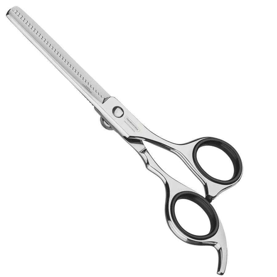 A Tesoura para cabelo Tramontina em Aço Inox com Fio Desbaste 6 Polegadas traz toda a qualidade e conforto dos produtos Tramontina para dentro do seu salão de beleza! Desenvolvida para profissionais que desejam reduzir o volume dos cortes, é produzida em aço inox com anéis de silicone internos macios, parafuso para ajuste de pressão, amortecedor de silicone para impactos e apoio fixo para o dedo, que garantem maior conforto e muito mais precisão na execução dos cortes. Possui lâminas dentadas que a tornam uma tesoura perfeita para a finalização dos cortes, dando acabamento, sem diminuir o comprimento dos fios. Uma tesoura que vai te auxiliar a efetuar cortes muito mais bonitos!