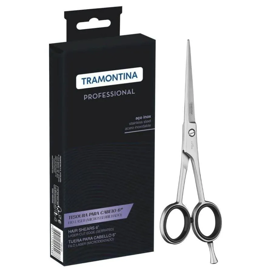 A Tesoura para cabelo Tramontina em Aço Inox com Fio Laser 6 Polegadas é perfeita para criar o corte dos sonhos! Desenvolvida para os profissionais que desejam cortes precisos, ela apresenta microsserrilha nas lâminas, que prendem as mechas de cabelo e impedem que elas escorreguem. Ideal para cortes retos, curtos sem desfiar e para técnica do pente livre, é produzida em aço inox com anéis de silicone internos removíveis, apoio de dedo removível, cabo simétrico e amortecedor de silicone para impactos, que garantem maior conforto no manuseio e precisão no corte. Um produto com toda a tecnologia Tramontina e que vai deixar qualquer corte muito mais bonito!