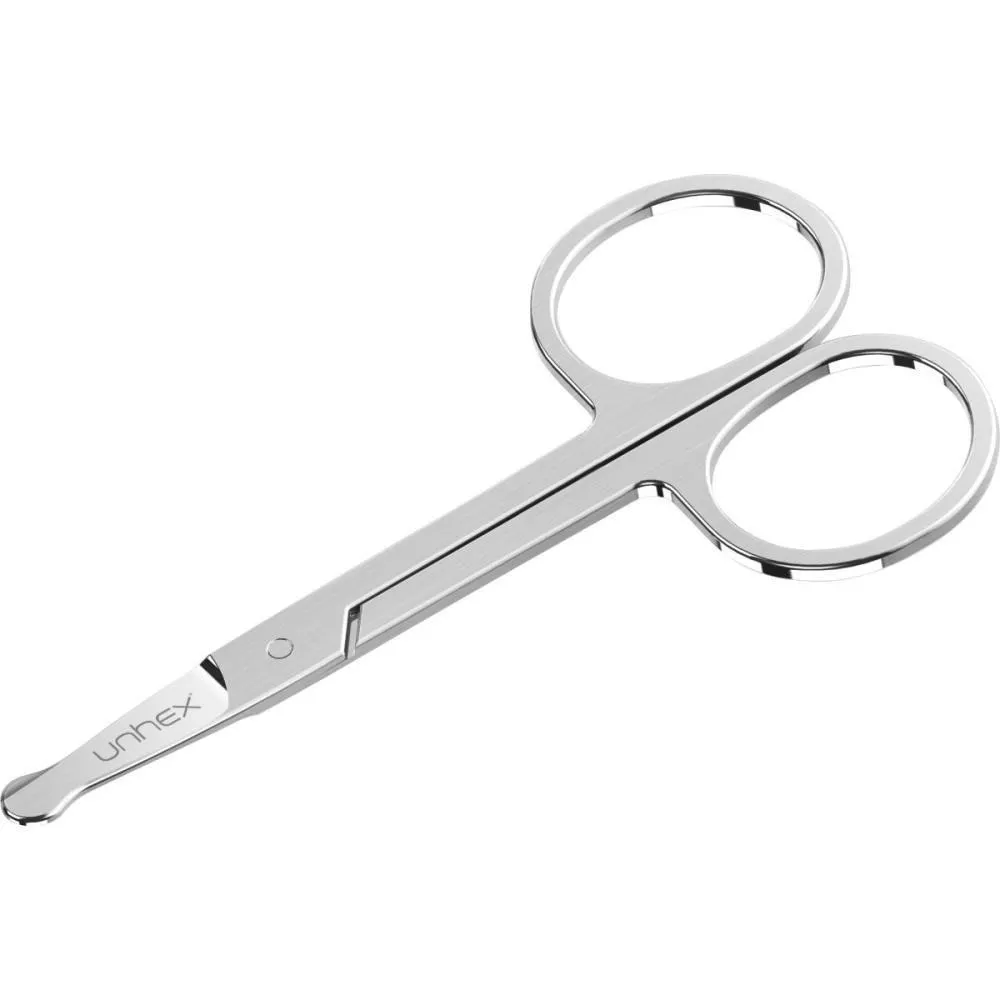 TESOURA DE PONTA ARREDONDADA UNHEX Ideal para aparar os pelos do nariz, ouvido e bigode. Possui ponta arredondada que proporciona mais segurança e conforto. É uma tesoura leve e resistente, com corte preciso e cabo de fácil manuseio. Especificações: Comprimento: 9 cm.