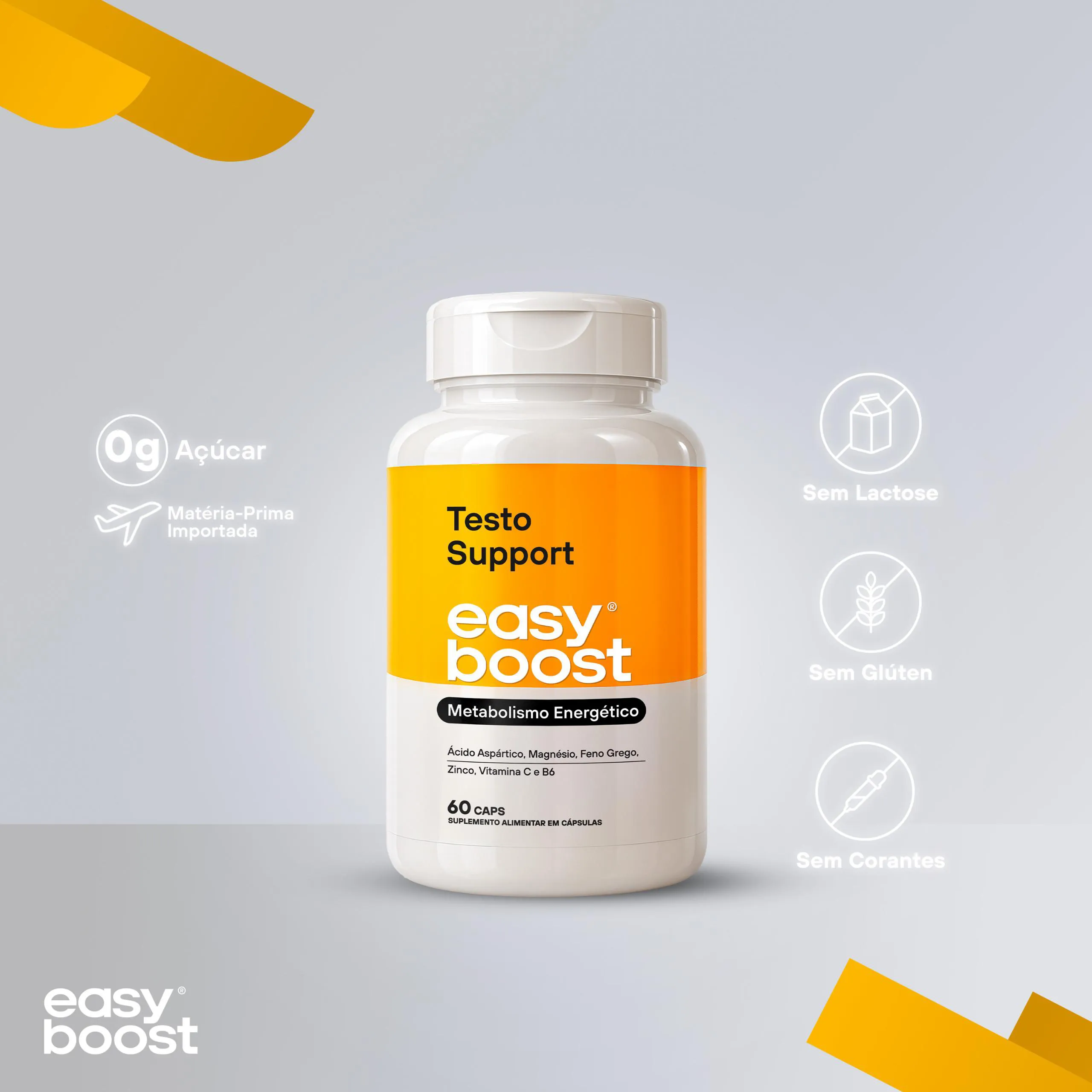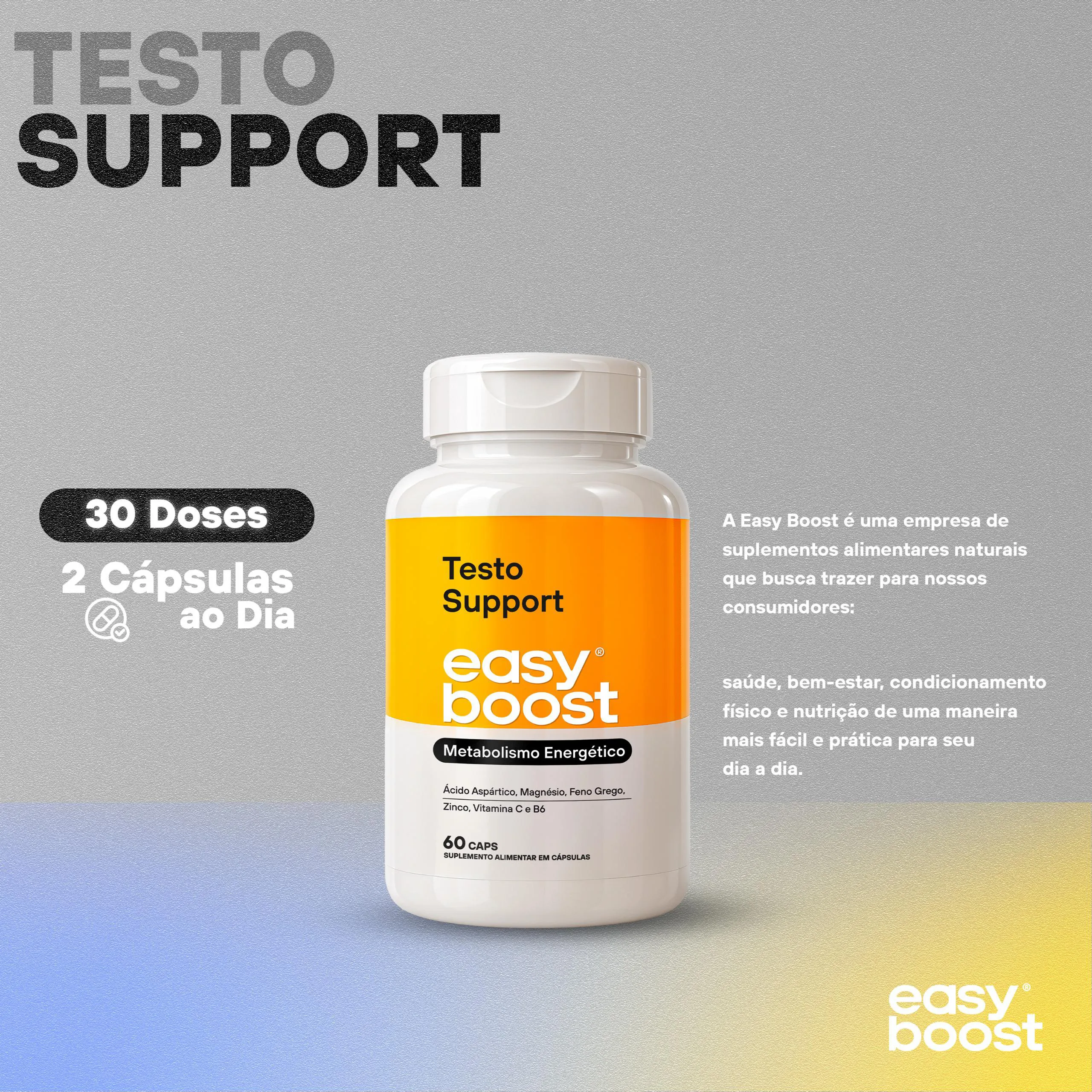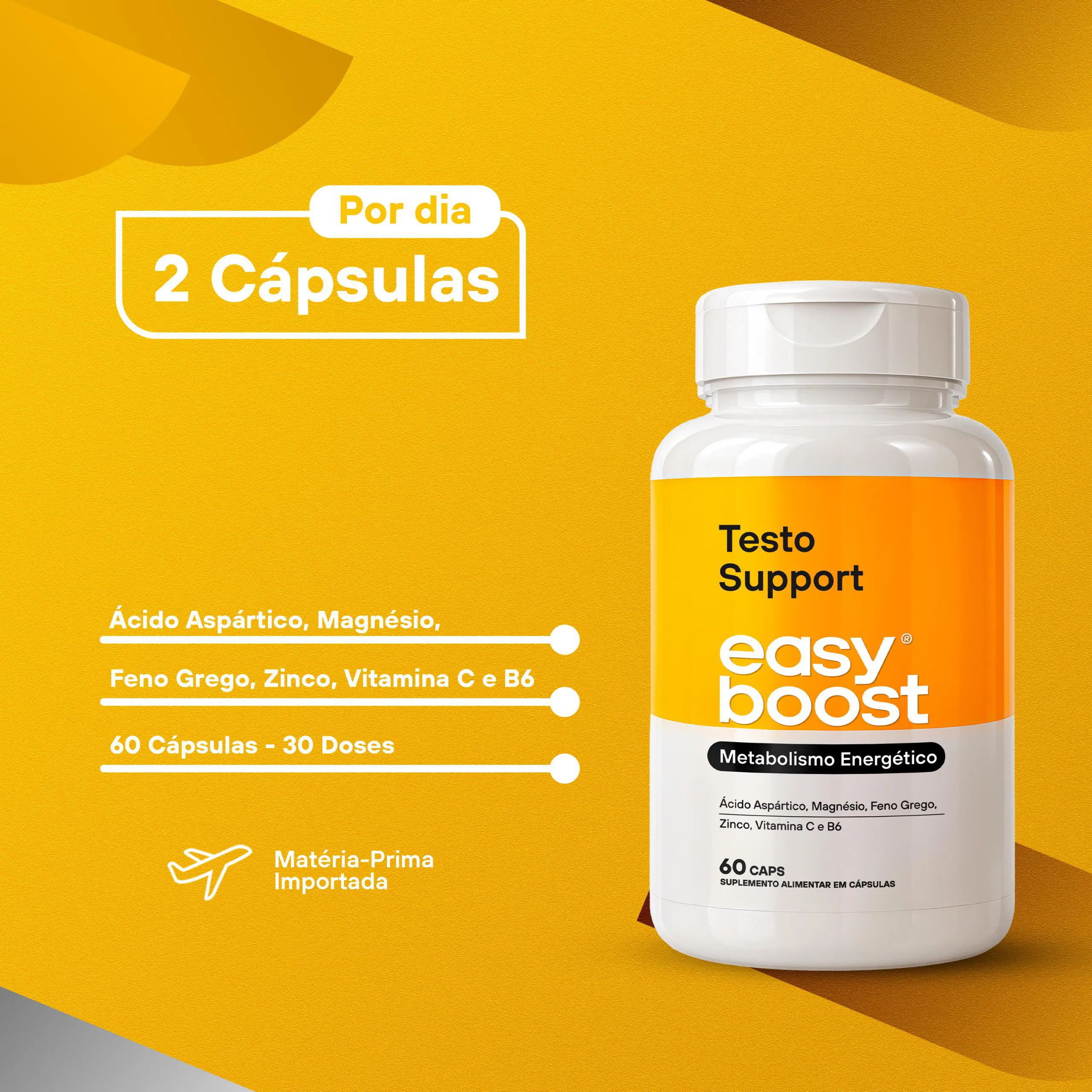 Neste anúncio você irá adquirir 1 frasco de Testo Support Easy Boost 60 Cápsulas (30 DOSES) com uma validade longa, de no minímo 12 meses.