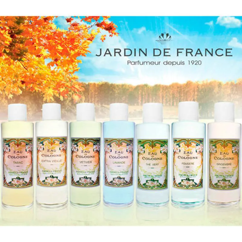 A Marca:Jardin de France foi fundada em 1920 em Amboise, uma região conhecida na época como o “Jardim da França”. Desde então, a empresa se especializou na criação de Águas de Colônias.
