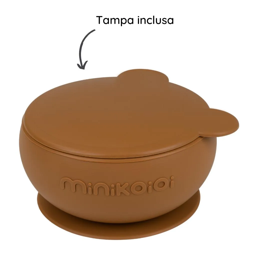 Tigela Urso de Silicone Bowly 450Ml Woody Brown - Minikoioi