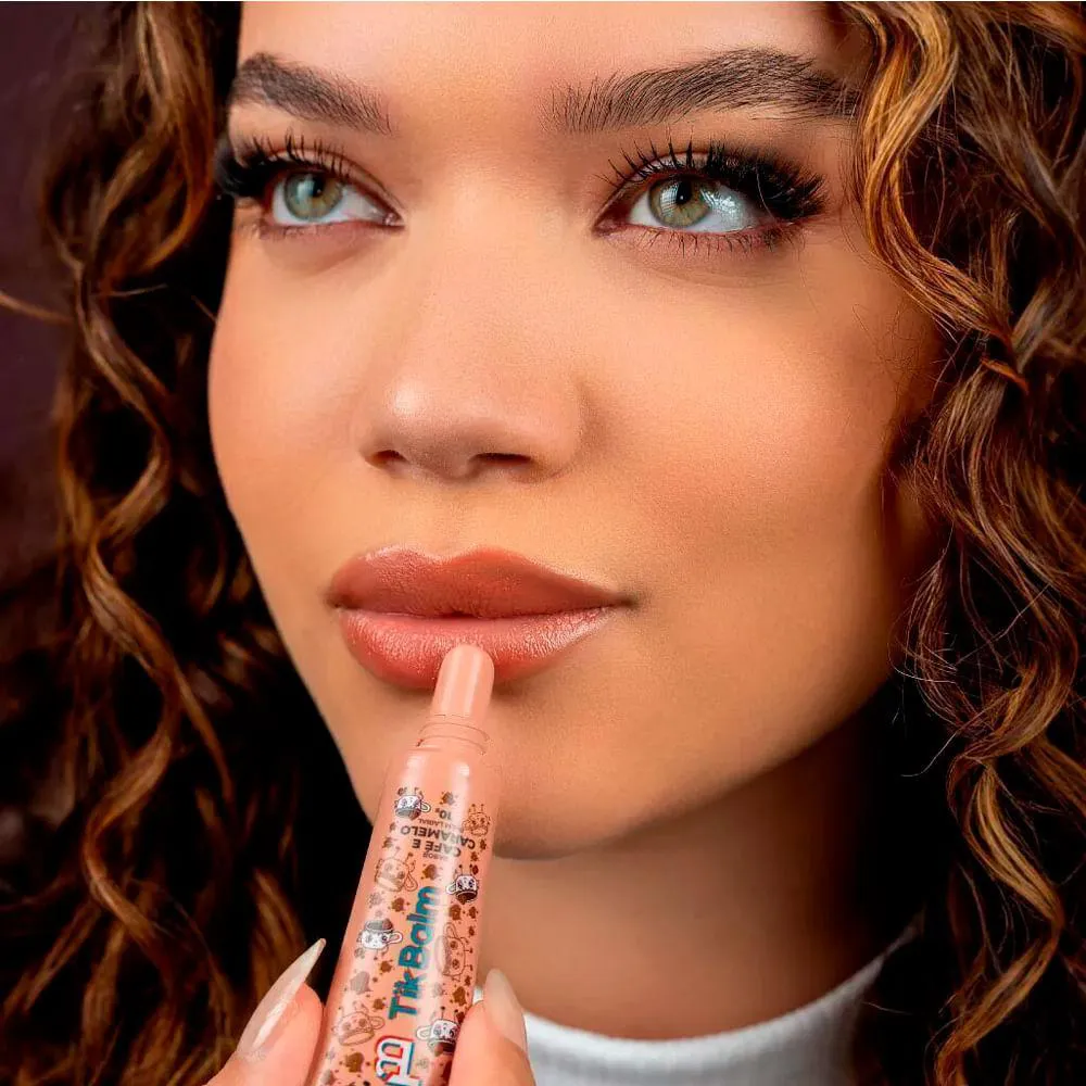 Aplique o Tik Balm Café e Caramelo diretamente nos lábios sempre que precisar de hidratação e proteção. Pode ser usado sozinho ou como base para batom.
