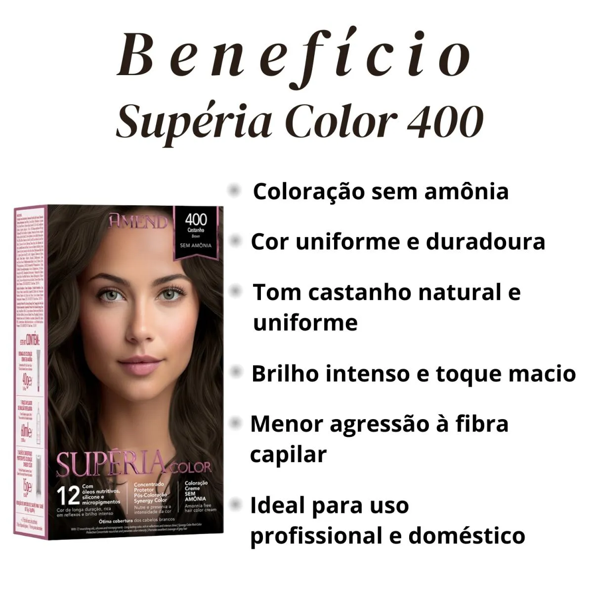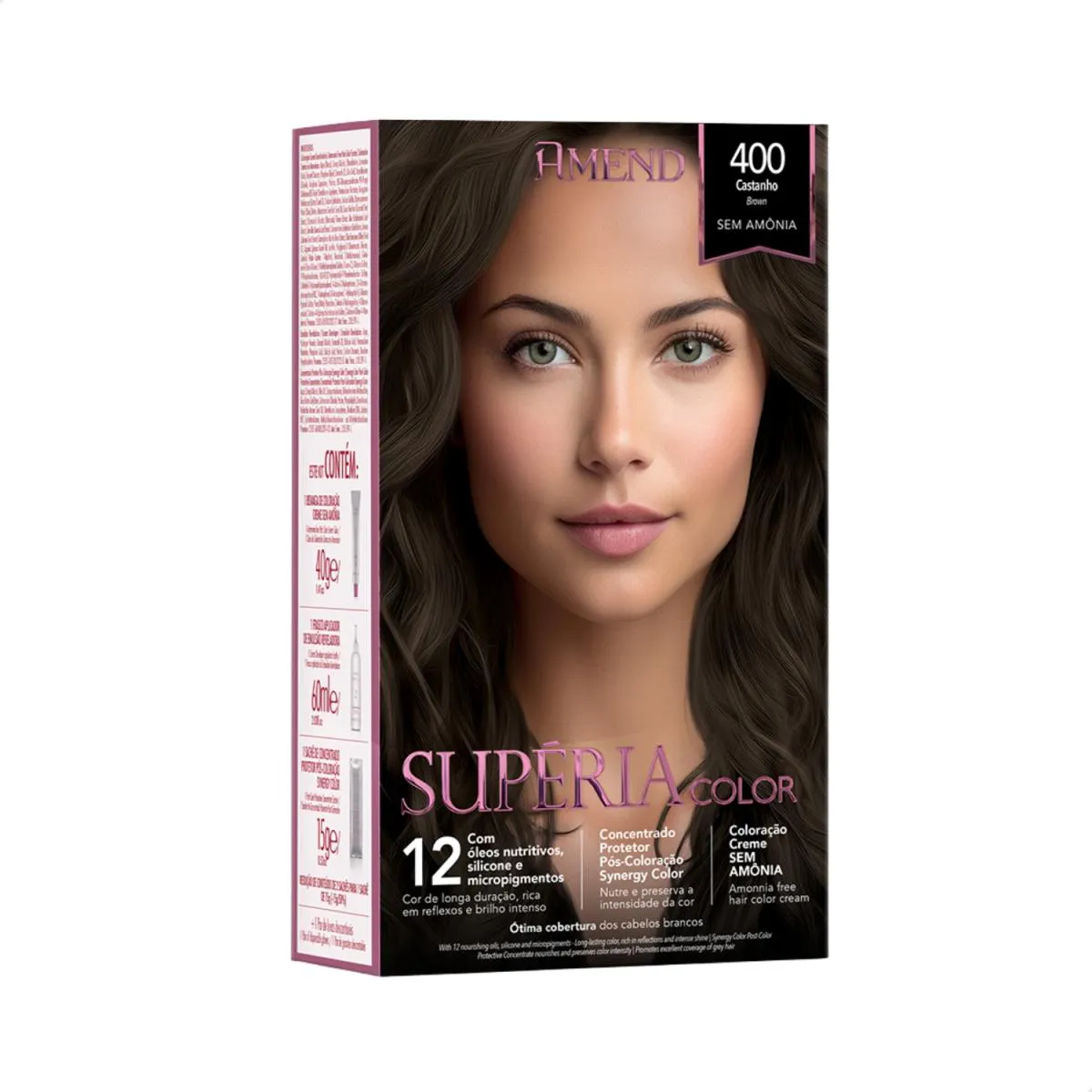 Tinta de Cabelo Amend Superia Color 400 Castanho sem Amônia
