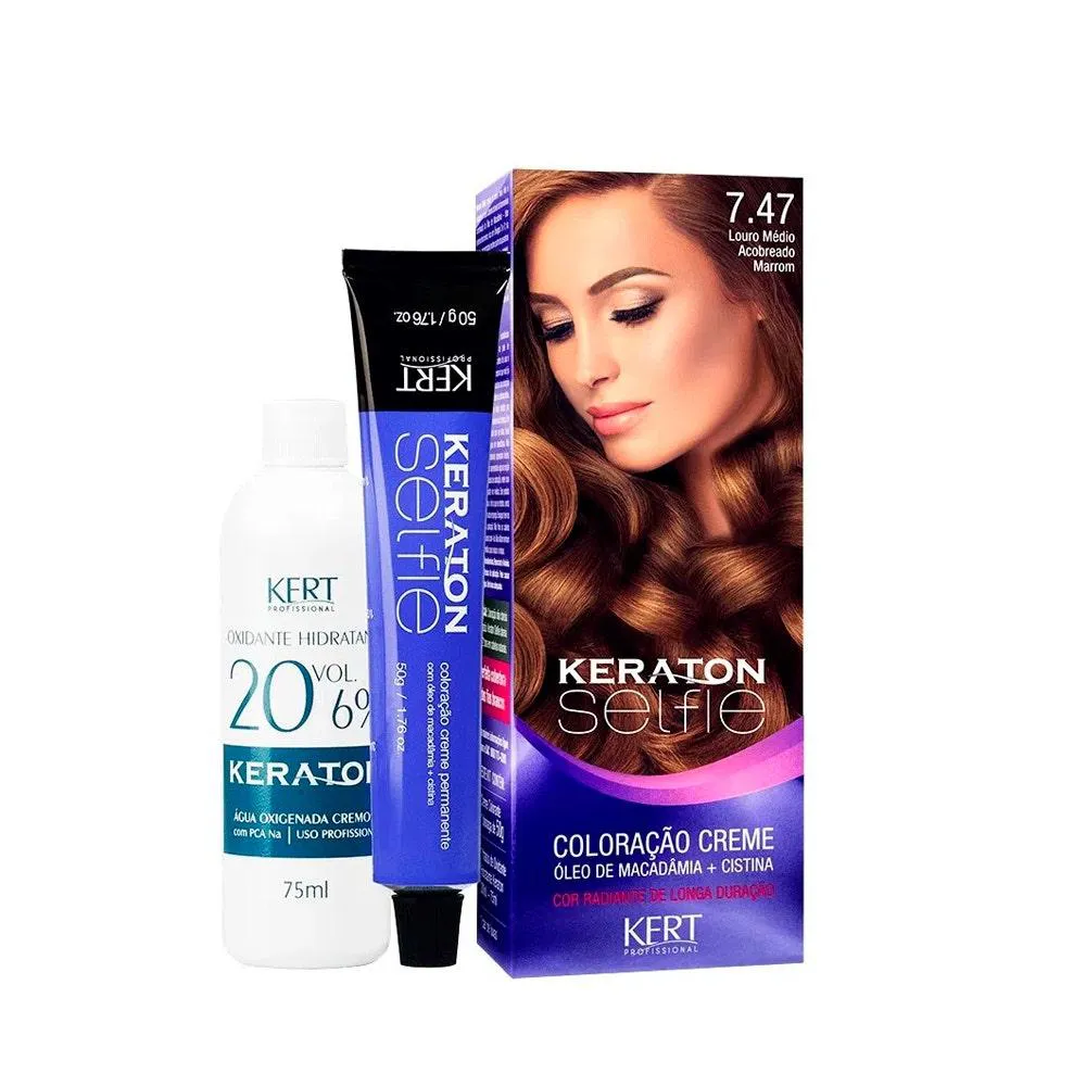 TINTURA KERATON SELFIE 7.47 LOURO MéDIO ACOBREADO MARROM