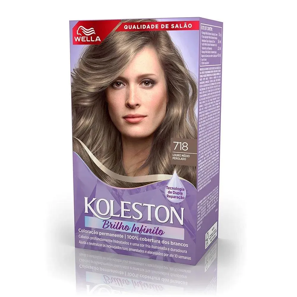 TINTURA KOLESTON 718 LOURO MEDIO PEROLADO Koleston, a primeira coloração em creme do mundo, mantém a intensidade da cor dos cabelos por até dez semanas e oferece cobertura perfeita dos brancos. Com tecnologia avançada, combate danos aos cabelos e hidrata tão intensamente quanto colore