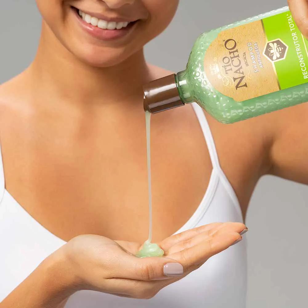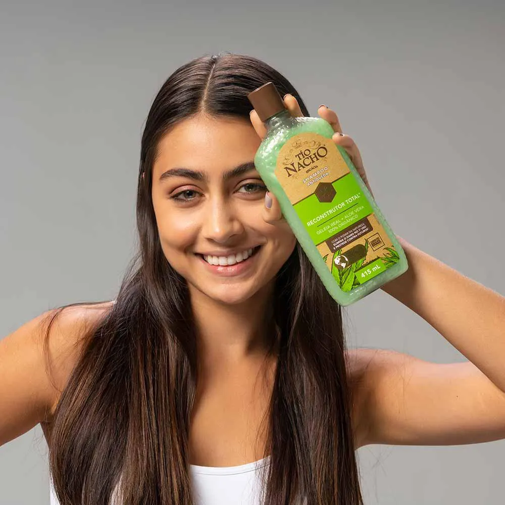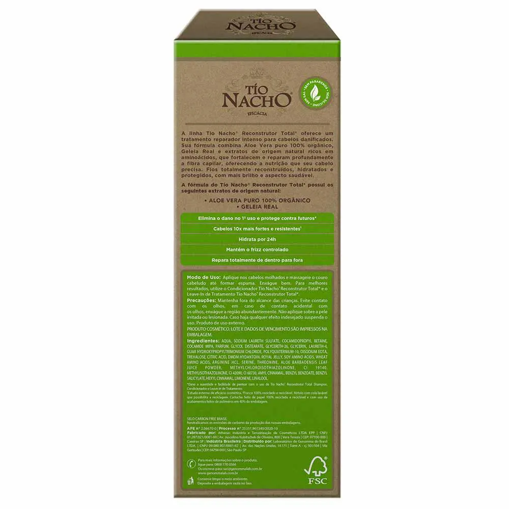 O Tío Nacho Shampoo Reconstrutor Total é um produto capilar desenvolvido para tratamento reparador intenso, formulado com aloe vera puro 100% orgânico, geleia real e extratos naturais ricos em aminoácidos. Sua composição é especialmente criada para cuidar de cabelos danificados.