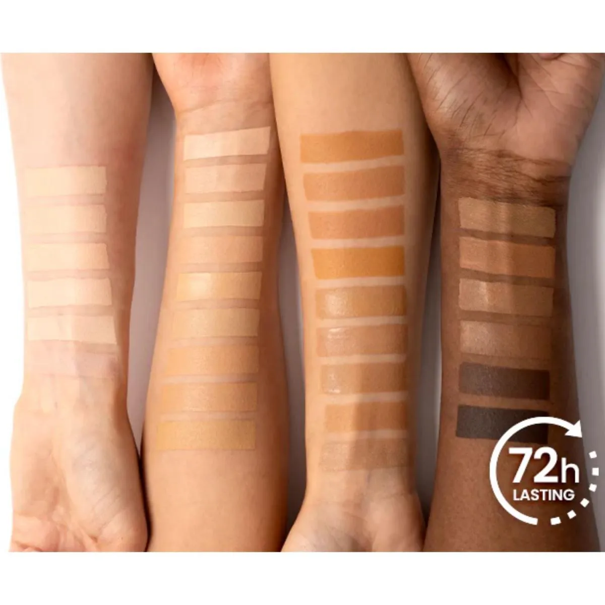 Pressione levemente a esponja aplicadora na almofada de base e aplique sobre a pele com leves batidinhas até obter a cobertura desejada. Resultado: