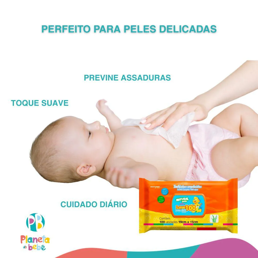Toalhas Lenços Umedecidos Natural Baby com 100Un - Evergreen