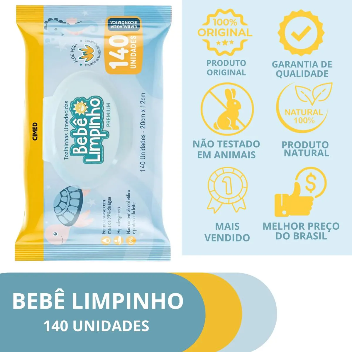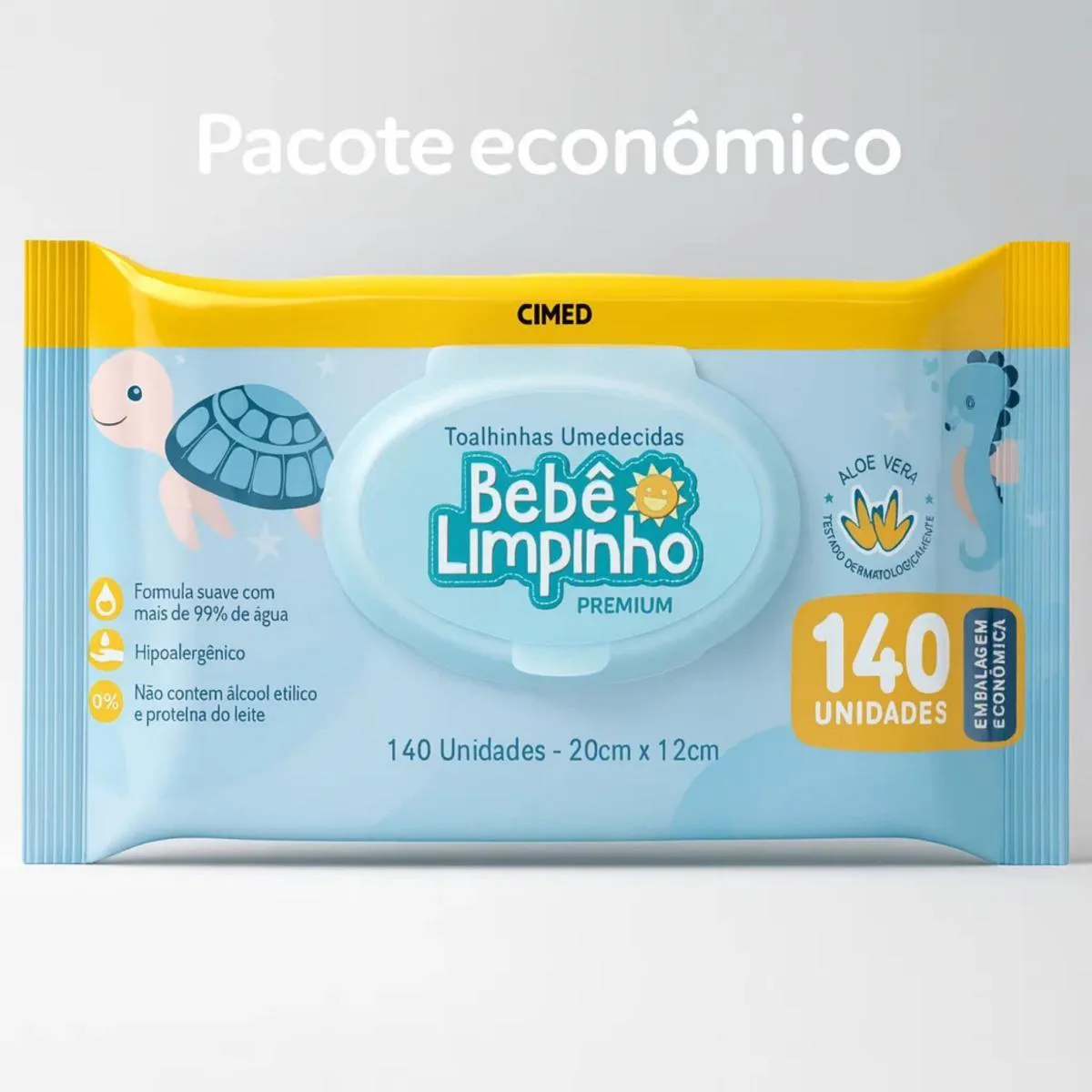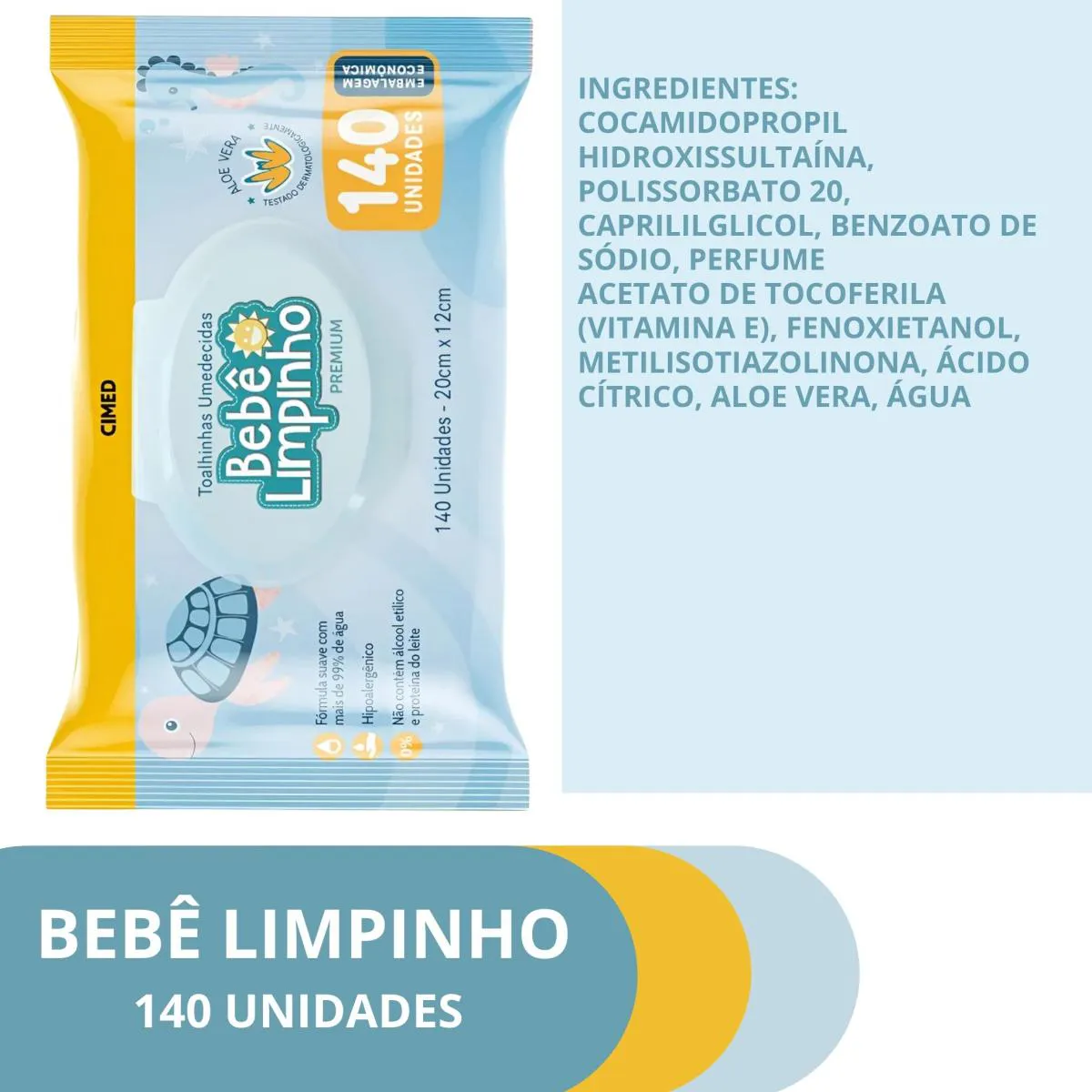 Toalhas Umedecidas 140 Unidades Bebê Limpinho Cimed Lenço sem Álcool Aloe Vera