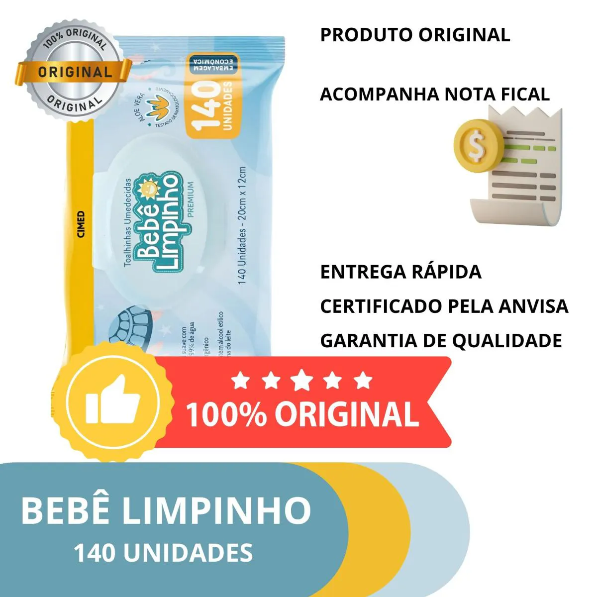 As Toalhas Umedecidas Bebê Limpinho Cimed 140 unidades foram desenvolvidas para trazer praticidade, suavidade e segurança para a rotina de higiene do bebê. Ideais para usar no dia a dia, em casa ou em passeios, elas substituem perfeitamente o lenço umedecido tradicional e fazem parte dos itens mais buscados pelos pais que procuram um produto eficiente, seguro e com excelente custo-benefício. O pacote econômico com 140 unidades atende muito bem quem procura opções como toalhas umedecidas, lenços umedecidos sem cheiro, toalha para banho do bebê e kits de cuidados infantis. As toalhas possuem uma textura macia e resistente, facilitando a limpeza durante a troca de fraldas, mãos, rosto e corpo. Sua fórmula é livre de álcool e contém aloe vera e vitamina e, que proporcionam sensação de suavidade e conforto. São ideais para quem busca uma alternativa prática para compor um kit de mimos de bebê ou manter sempre por perto no dia a dia. O produto também atende consumidores que pesquisam por opções econômicas, como caixas de lenço umedecido, pacotes fechados ou compra em atacado. O Bebê Limpinho Cimed se destaca por ser um produto versátil e acessível, atendendo famílias que desejam qualidade aliada a uma boa quantidade. Para quem busca toalhas umedecidas para adultos, o pacote de 140 unidades também pode ser útil em diversas situações de higiene rápida. Além disso, é uma opção vantajosa para consumidores que pesquisam promoções de lenços umedecidos, kits completos ou embalagens com grande quantidade. A embalagem possui tampa abre e fecha, contribuindo para manter a umidade das toalhas por mais tempo, evitando desperdícios e garantindo praticidade no dia a dia. Essa funcionalidade é muito buscada por quem procura produtos para rotina com bebês, especialmente itens como toalhas papi soft, toalhas de capuz e acessórios relacionados à higiene infantil. Prática de carregar em bolsas, mochilas e organizadores, a embalagem foi pensada para facilitar a vida dos pais e cuidadores. As toalhas Bebê Limpinho Cimed são perfeitas para quem deseja um produto confiável, com ingredientes que proporcionam sensação agradável de limpeza e cuidado, sem perfume forte e sem álcool. Atendem muito bem quem busca lenços à base de água, lenço sem cheiro ou opções suaves para peles sensíveis. Para uso no dia a dia, durante viagens ou composições de kits para presentes, elas se tornam um item indispensável. MULTIACTIVE, EMPRESA COM MAIS DE 30 ANOS DE EXPERIÊNCIA; EMITIMOS NOTA FISCAL PRODUTO ORIGINAL EMPRESA COM TODAS AS LICENÇAS SANITÁRIAS ENVIO IMEDIATO