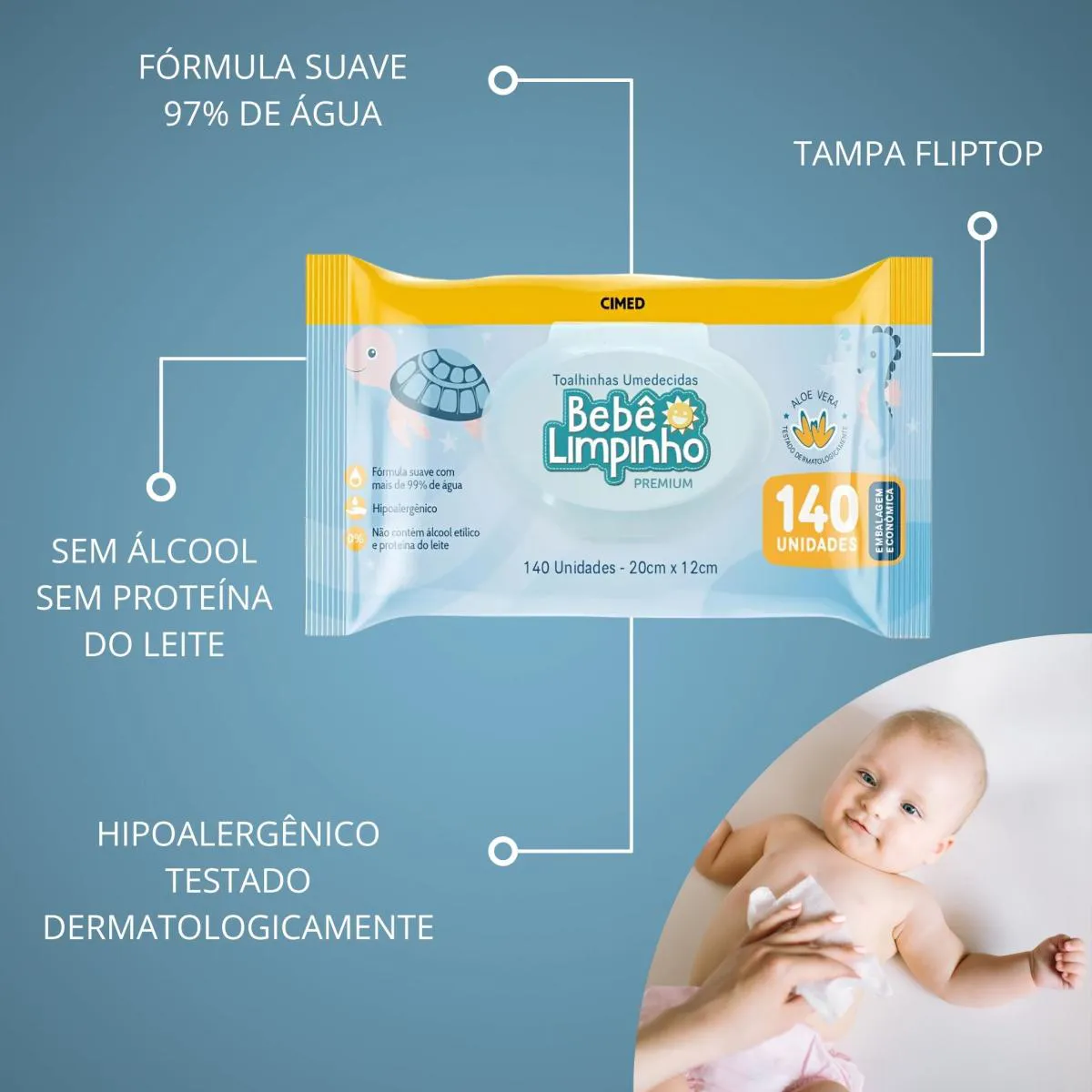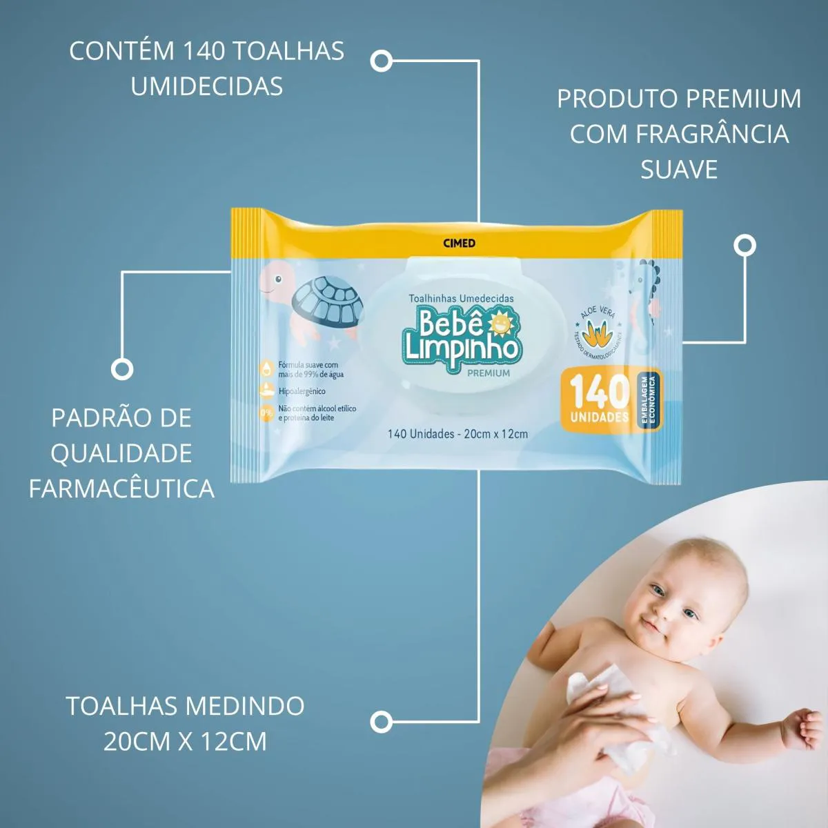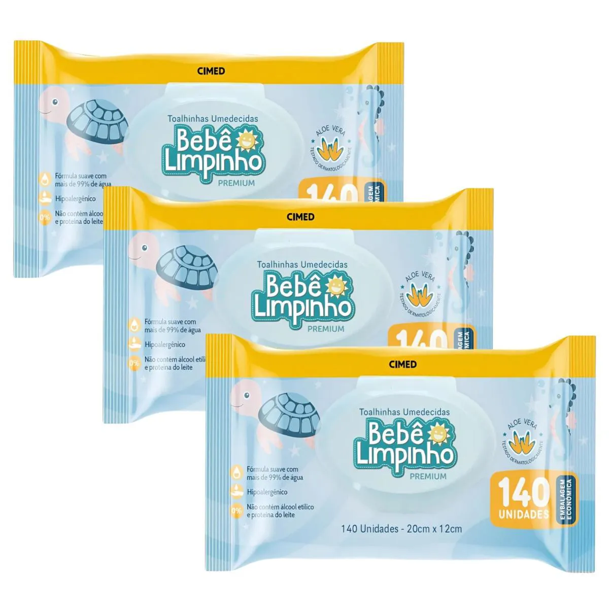 Toalhas Umedecidas Kit 3 Unidades 140 Lenco Bebê Limpinho Cimed Lenco sem Álcool Pacote Econômico