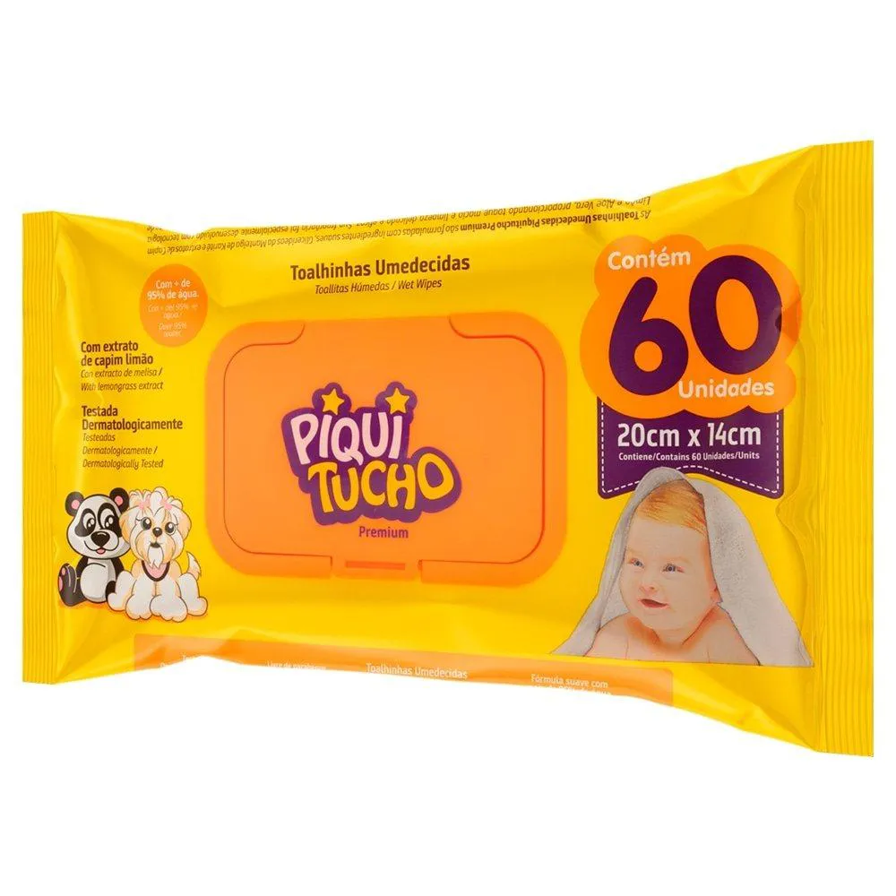 Toalhas Umedecidas Piquitucho Premium - Pacote com 60 Toalhas